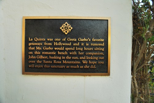 Inside the resort of La Quinta, they have erected a plaque near a tile bench. It says that Greta Garbo and John Gilbert sat there, “basking in the sun and watching the Santa Rosa Mountains.” I don’t know if this is entirely true or not, but if you visit here you might be tempted to do the same.