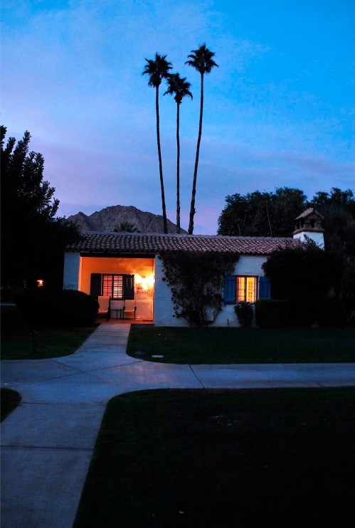 At twilight, still in a drug induced haze, I grabbed my camera, ventured outside, and walked around La Quinta in the orange-tinted light of sunset. The sun drops behind the mountain, dim electric garden lights turn on, women with wet hair change from bathing suits to bathrobes, cocktails are poured and children disappear. This is a haunting and fleeting hour, a temporary time between the activity of day and the promise of evening, when hope is hungry and our appetites turn to wine and fragrance and love and food.
