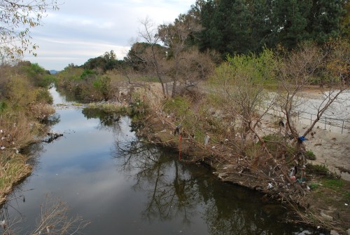 Riding my bike around the Sepulveda Basin today, I was startled and sickened to see a river lined with trash.