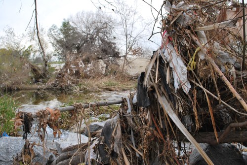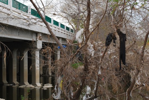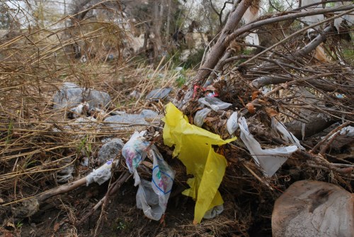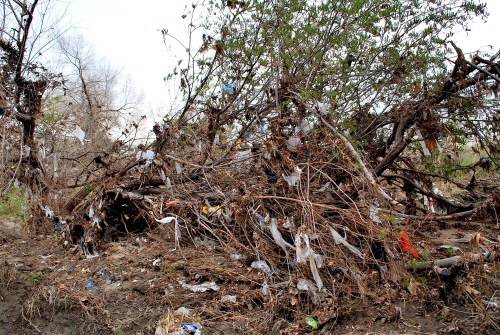 Plastic bags literally covered every branch, every limb, and every single tree along both sides of the banks; devouring, like some gruesome movie monster, nature.