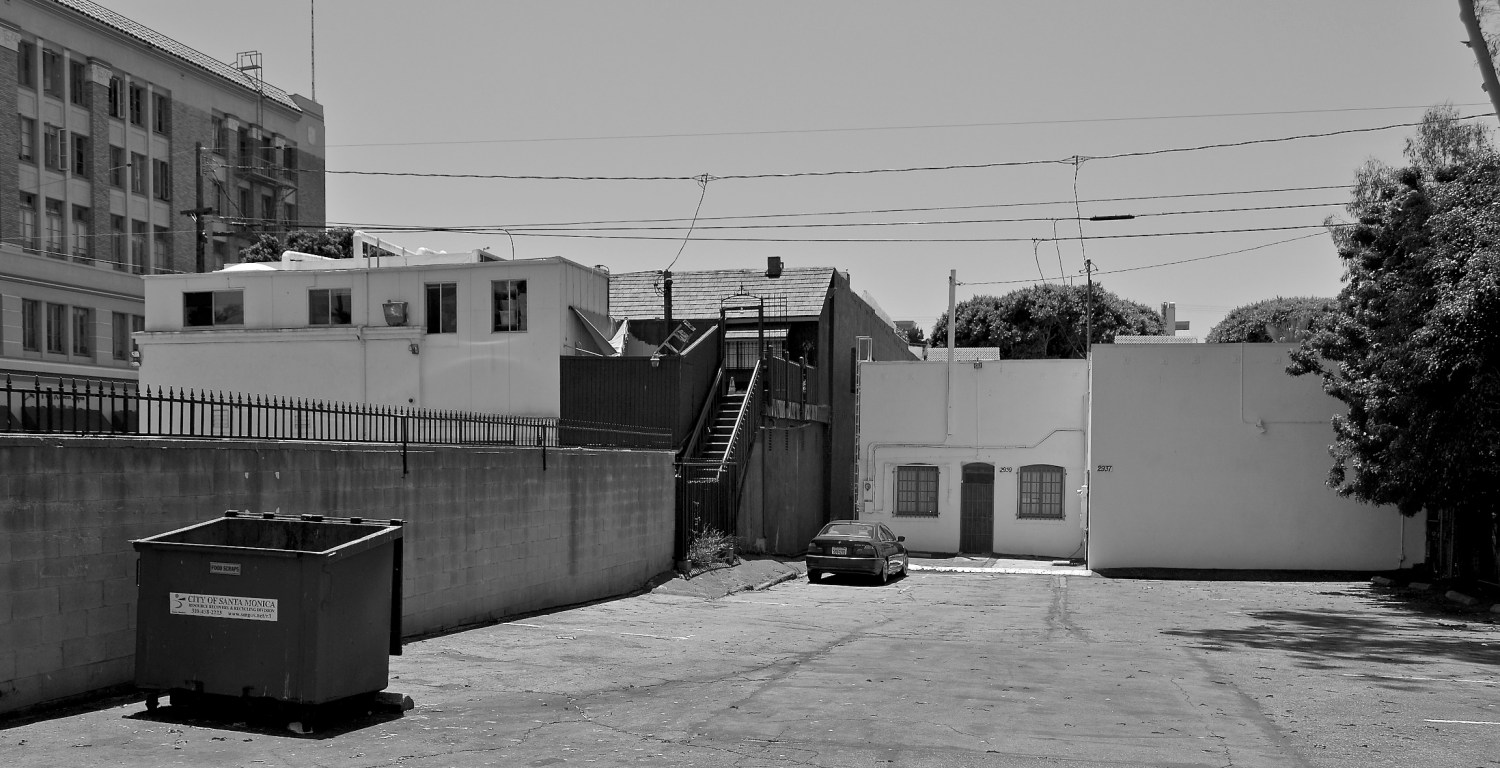 Along Main Street were rows of tightly packed, one-story buildings. He picked one, grabbed a window security bar and hoisted himself up onto the roof.