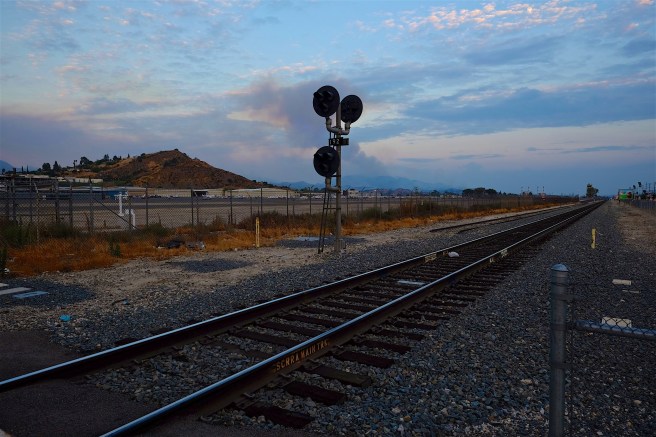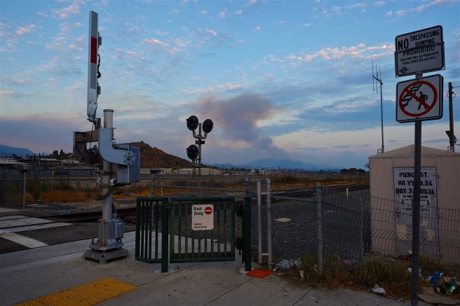 In Sunland, still along San Fernando Road, one could glimpse the hot flames shooting up in the crevices between the jagged hills, orange fire against the dark blue sky.