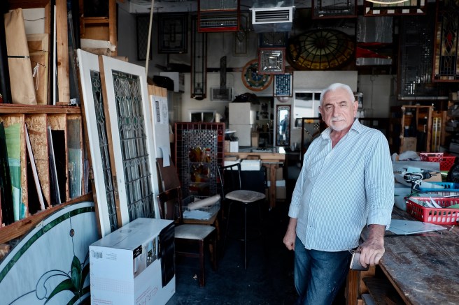 Over at Progressive Art Stained Glass Studio, 70-year-old architect and craftsman Simon Simonian rents a small unit on Aetna where he designs and molds exquisite stained glass for expensive homes, churches, synagogues and historic buildings.