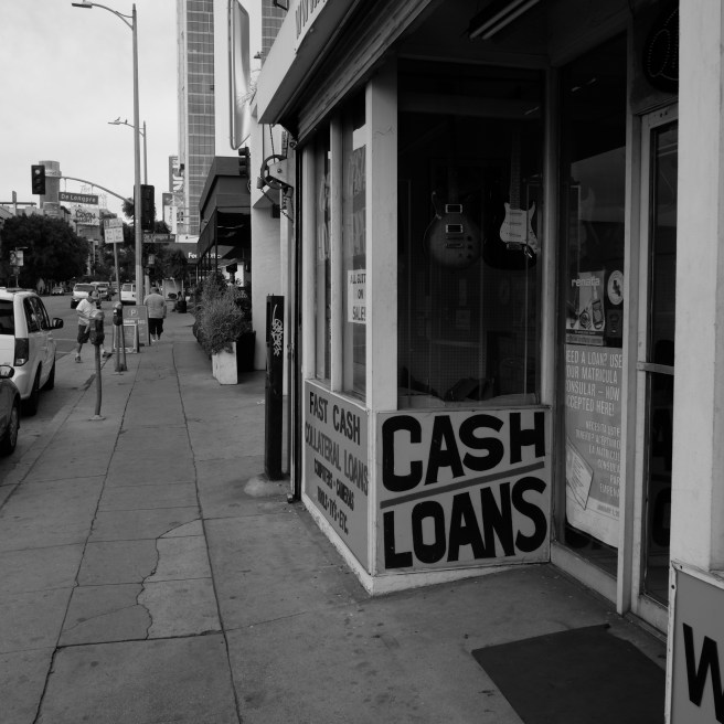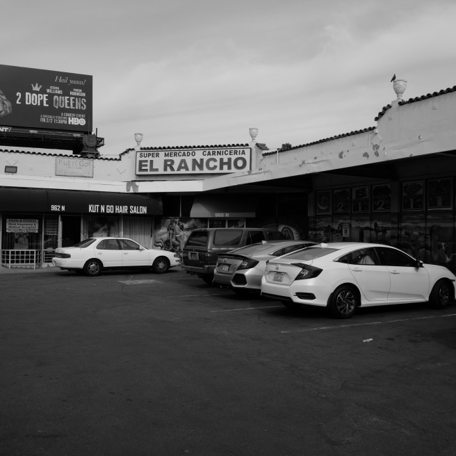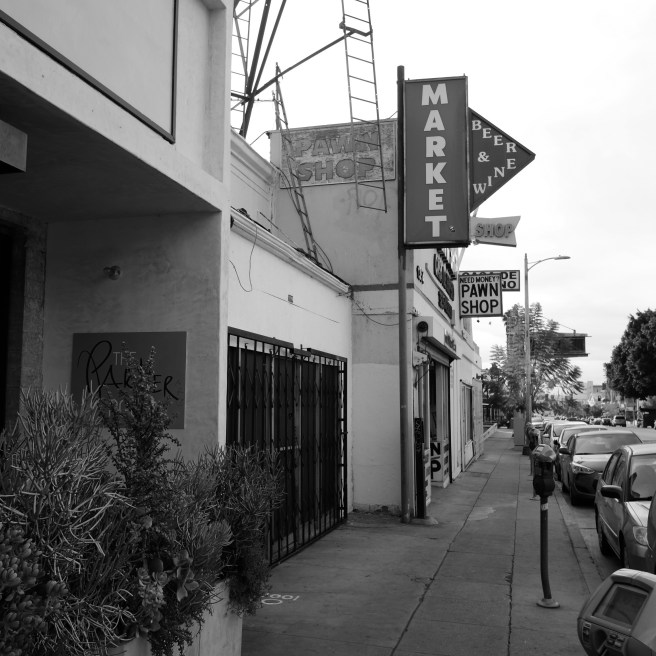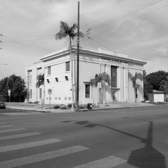 In black and white, editing out the poverty, Vine Street presents itself as a neat and tidy noir place. There is Stein and Vine Drums, the DWP Service Building, erected 1924; Bogie’s Liquors, the Army/Navy & Earthquake Supplies, and Camerford Avenue, a street I never heard of until today.