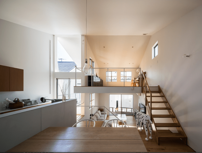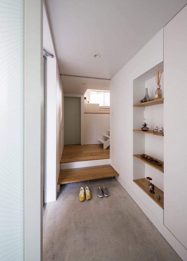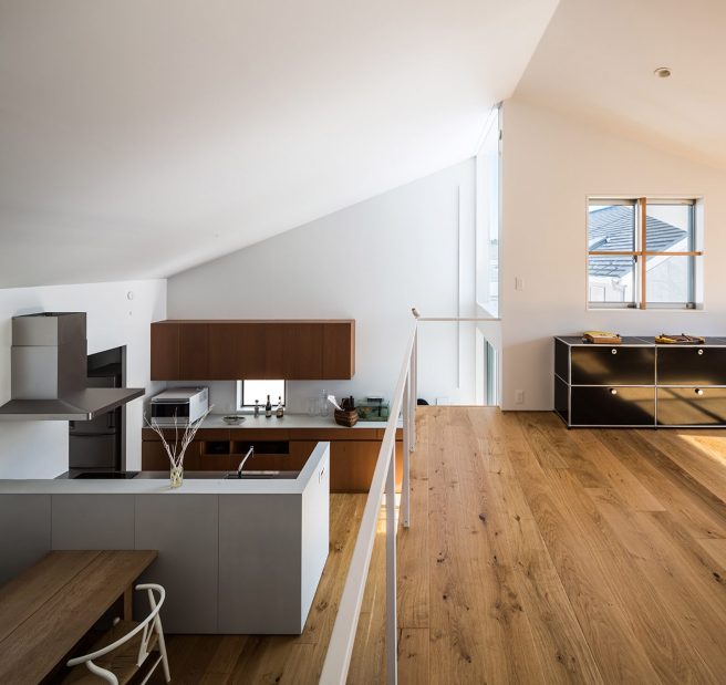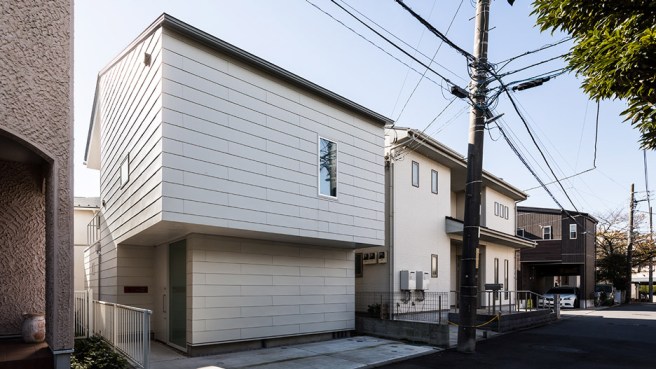 It is sandwiched between two other buildings, yet it does not feel claustrophobic. The house is located in a residential area near Sagami Bay in Kanagawa Prefecture,Japan.