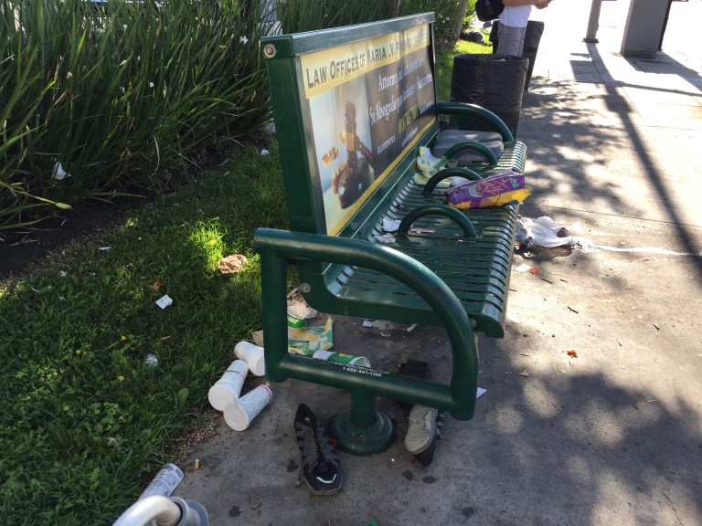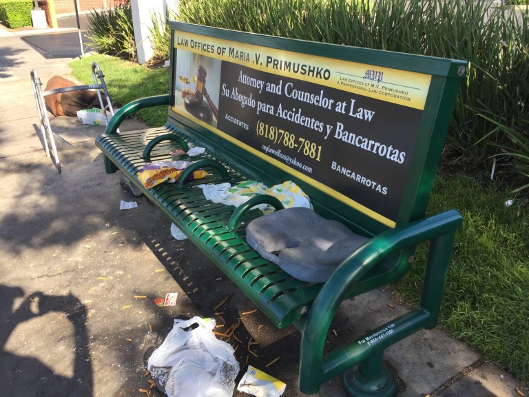 This homeless person, multiplied by thousands, living on bus benches, is not an inducement for increasing bus ridership. Thousands of potential riders will see this lawless, unsanitary and unsafe barbarism all over LA and make up their minds to do anything to NOT TAKE A BUS.