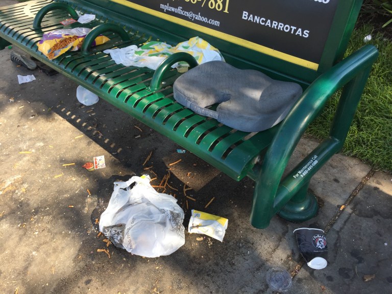 A champion of public transportation, he allows homeless to set up homes on bus benches, causing paying riders inconvenience and discomfort and discouraging and diminishing ridership.
