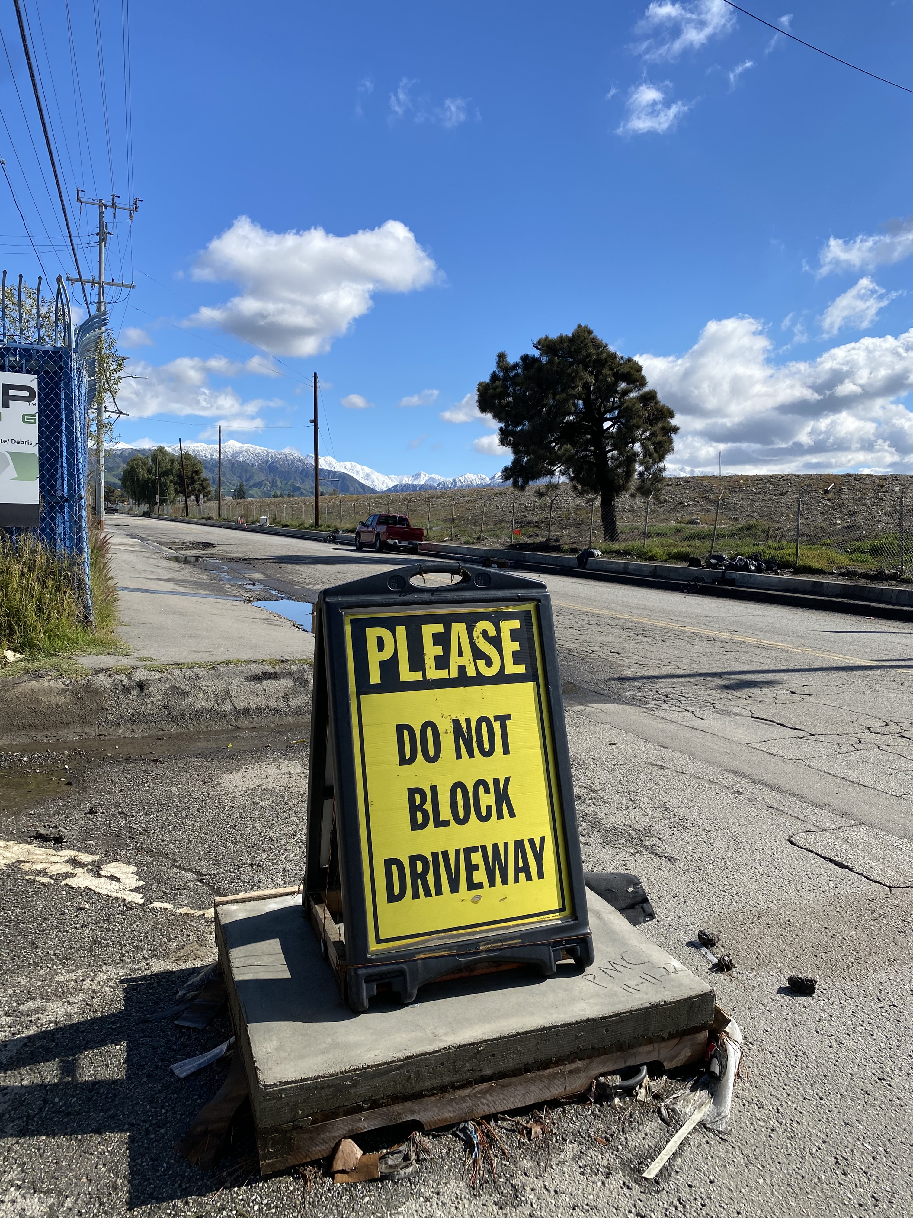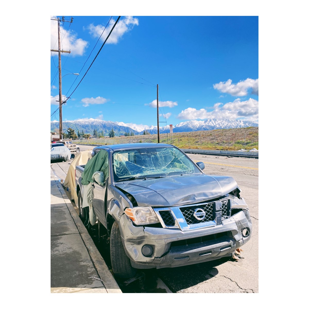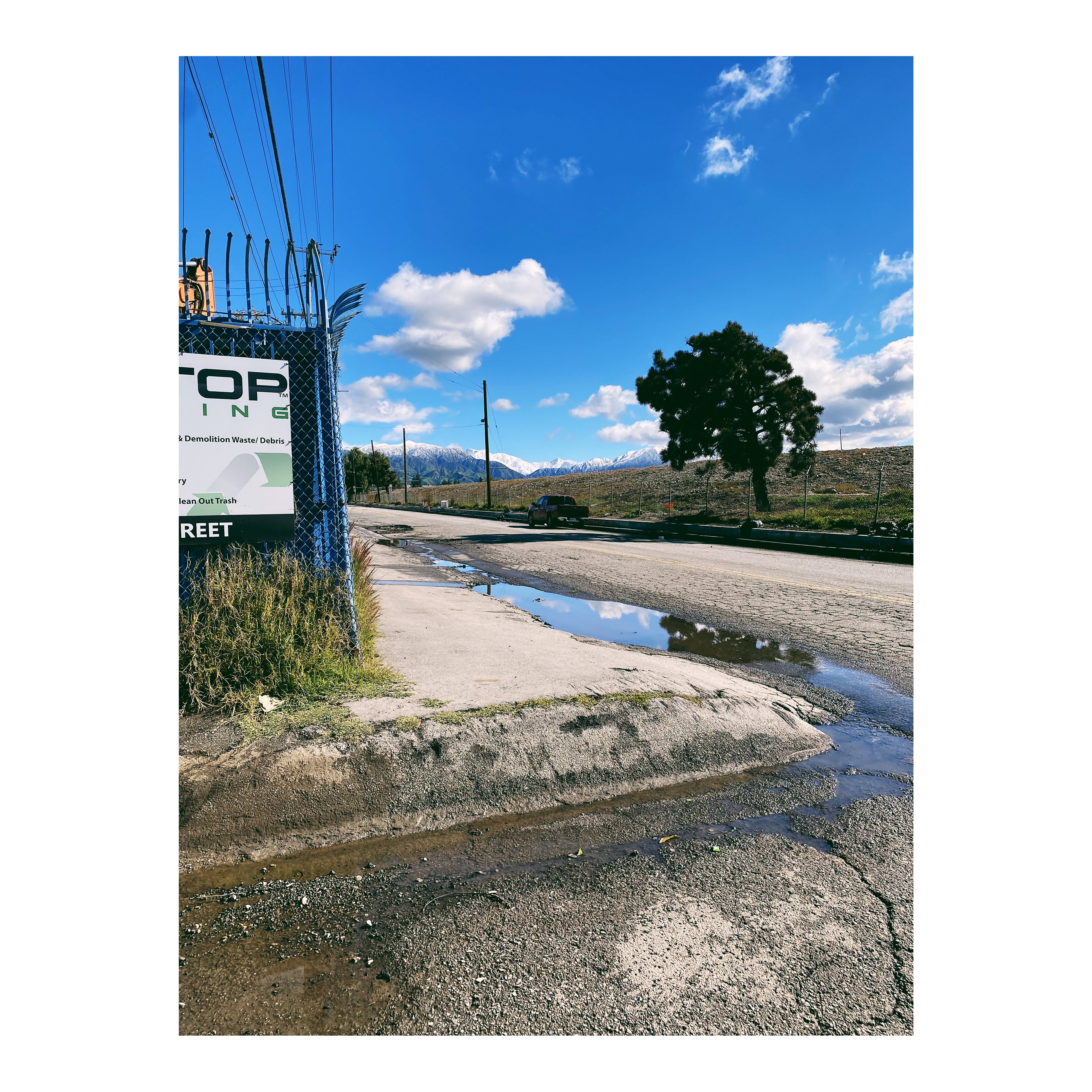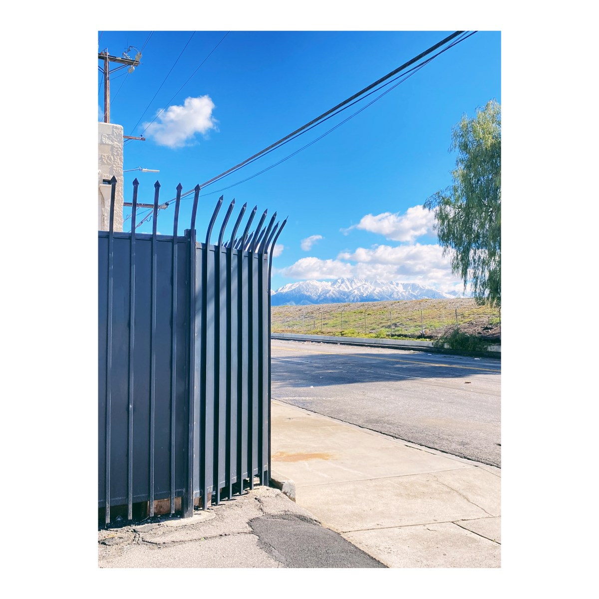 Beyond the steel gates and the steel junkyards, beyond the homeless tents and the wrecked cars, beyond the speeding vehicles dodging a potholed road, we saw the glorious San Gabriel range covered in snow, pure white snow, a gift from nature to the inhabitants of California, a reminder that no matter how hard we try and destroy this land, there is still one force stronger than us.