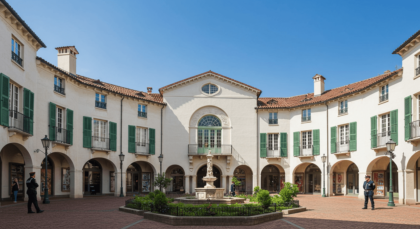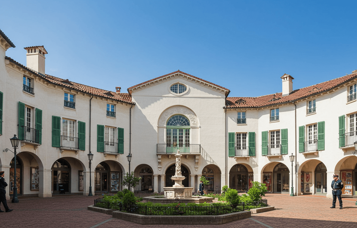 There are numerous courtyards, public and semi-private, which are encased by three and four story buildings.