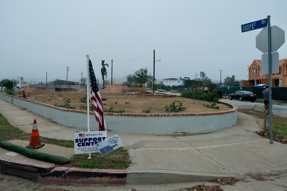 American flags were planted in soil like a Veteran’s Day cemetery. United in mourning, resolved in moving forward, the spirit of the Palisades shined. Or perhaps it was the spirit baptized in buckets of insurance money.