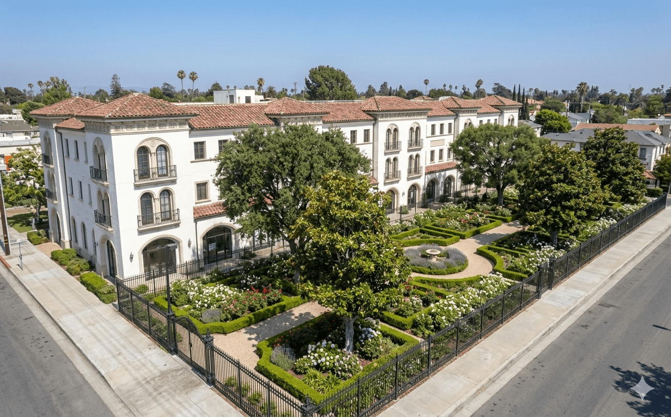I wondered what it would look like to replace the hideous mini-mall with a nice apartment building that surrounded a landscaped park. Through the help of Gemini this is what it created: