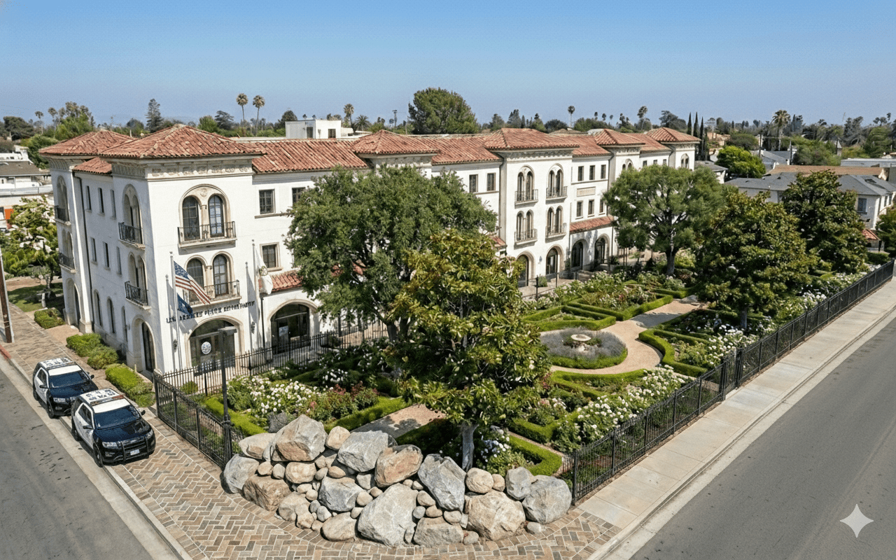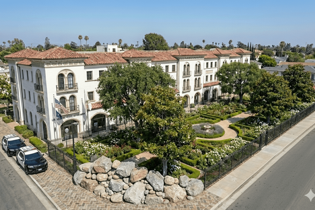 Because this is Los Angeles we have to build defensively to protect. This means that the corner should have large boulders to stop speeding vehicles from crashing into the fence, injuring or killing people.