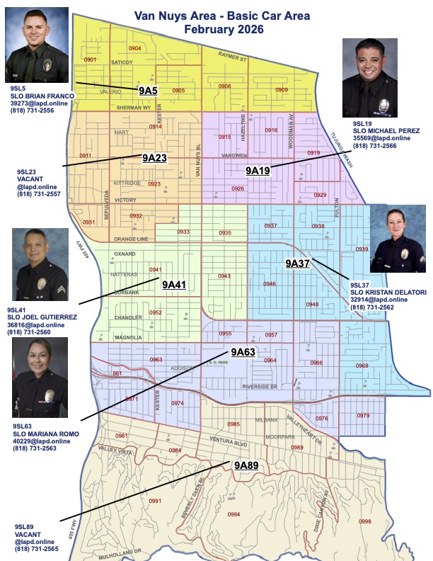 A map on the Van Nuys LAPD website shows that our district, just north of Victory, east of Sepulveda, is unprotected by a SLO. It seems that the area of Sherman Oaks, south of Ventura, where many household burglaries happen, is also without an SLO.