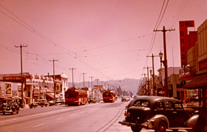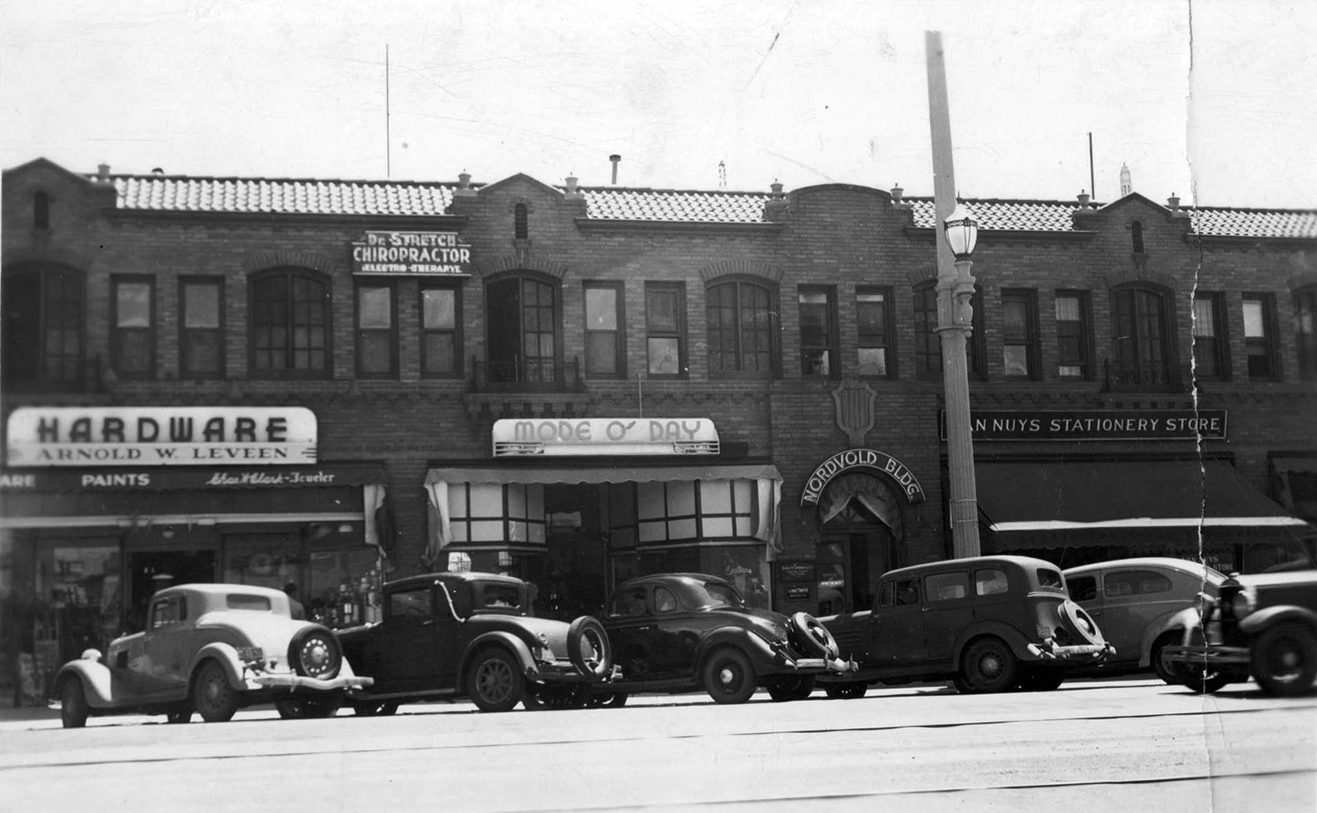 Van Nuys is described as a “model suburban homes community of Los Angeles City; strategic and important business center. Municipal administration headquarters for Los Angeles in the annexex area of San Fernando Valley.” Population 35,000. (Population in 2015 is estimated at 140,000)