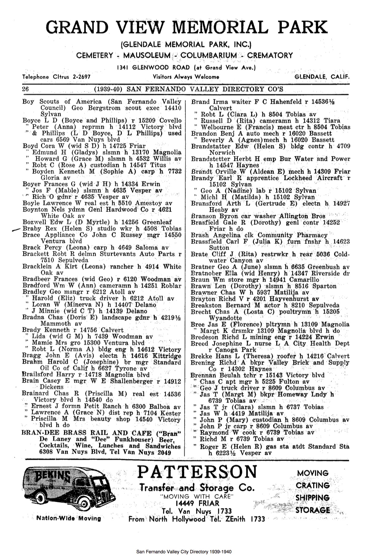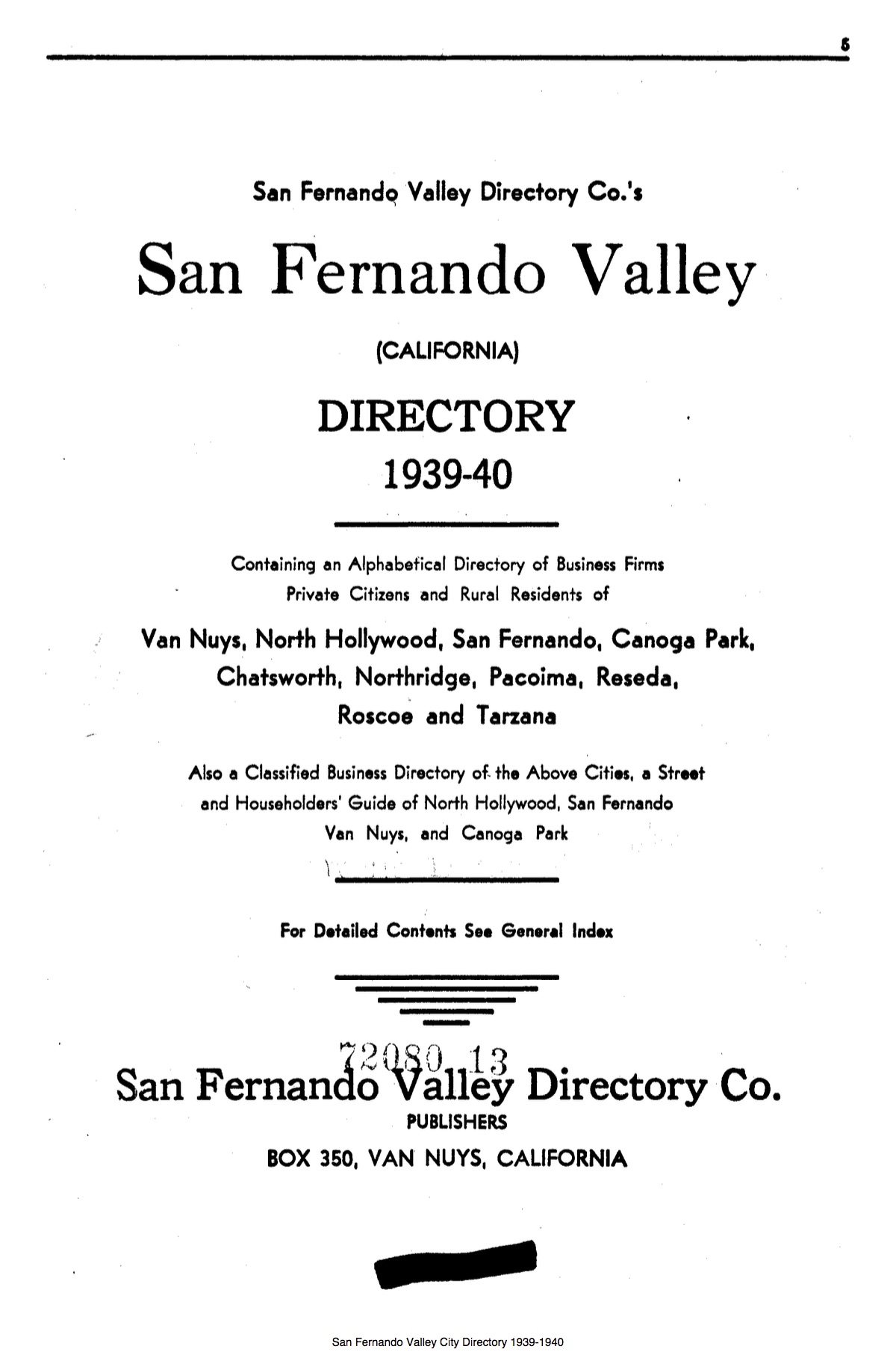 Of course, I turned to browse at the 1939/40 San Fernando Valley City Directory, all 674 pages of it, with its detailed listings of every single person, property and business in the entire valley at that moment in time.