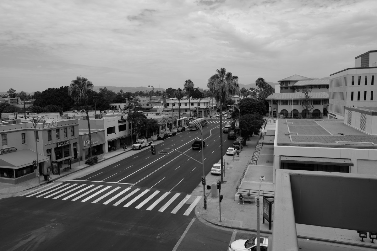 From 40 feet in the air Van Nuys still wears a costume of respectable commerce and responsive government.