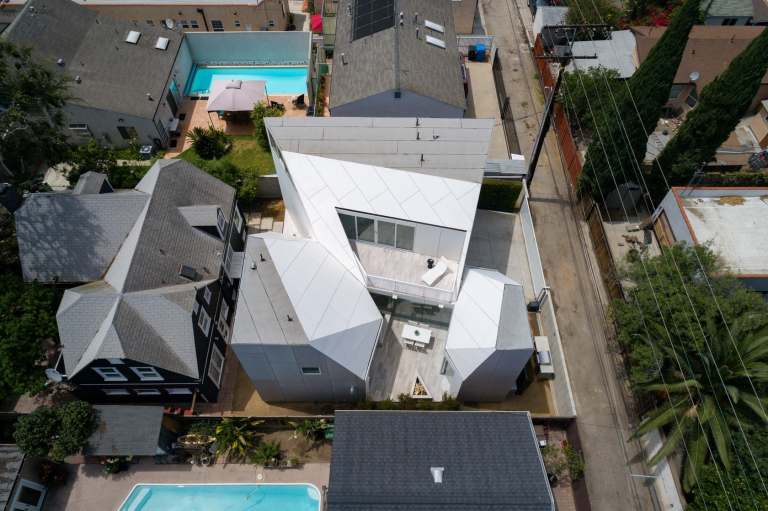So imagine how delightful it will be for neighbors who encounter a 15’ foot high building with an outdoor roof deck allowing partygoers and drunk revelers to float above all adjoining backyards like devilish angels? Here the architect has abandoned all pretense to privacy by designing a house where dozens of people can look down other people’s backyards from the top of a badly conceived back house. Imagine a house of YouTube influencers living here. What fun!