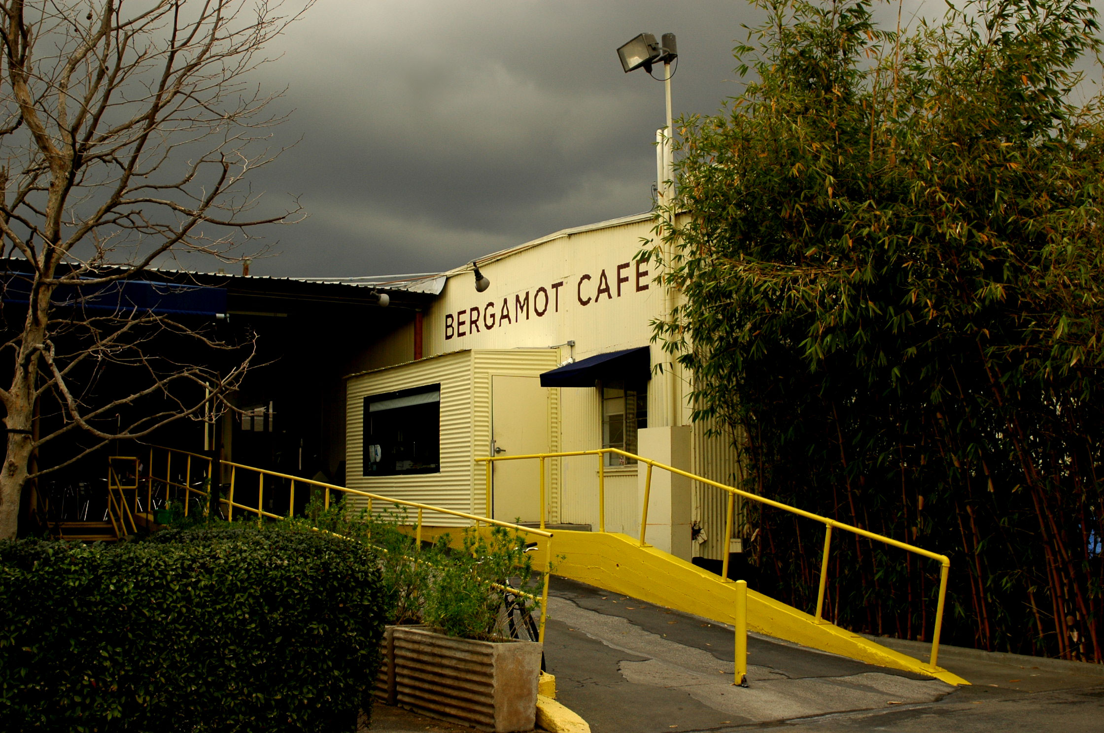 I went out to lunch at Bergamot Station, that corrugated steel collection of art galleries and exhibition spaces built on land that probably was once industrial. As always, the weather is glorious around here. You step outside into windy sunshine, with jasmine and ocean scented breezes. Young workers out for lunch, in their untucked shirts and droopy jeans, fall into Bergamot.