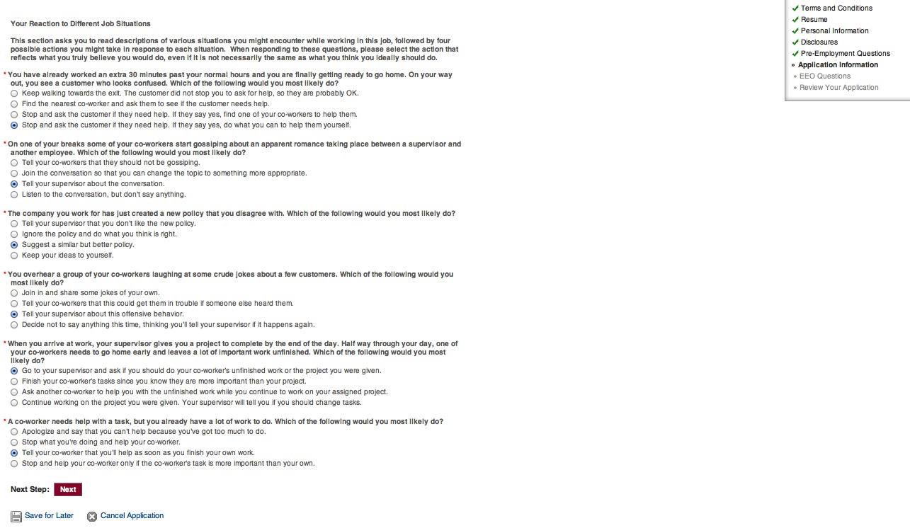 And there is one, big, fat, irritating part where they ask you multiple choice questions and ask you to check each one such as: