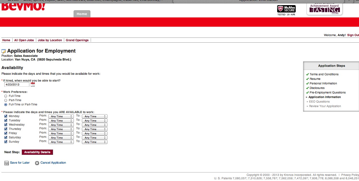 Days later, I call Olivia, the Van Nuys Bevmo Store Manager to ask her if she has received my online application.