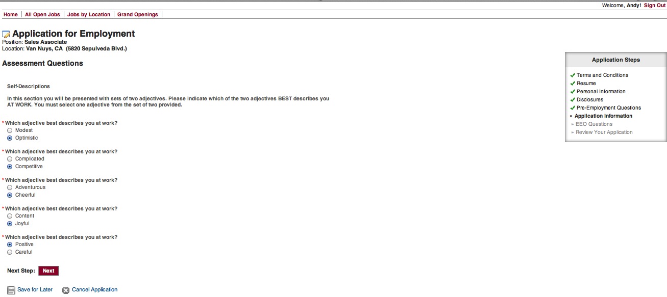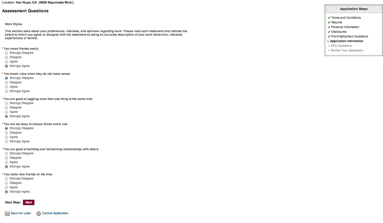 So now I live in Van Nuys. I’m not young. I think I can work in a big box beverage store, so I fill out the 30-minute online job application.