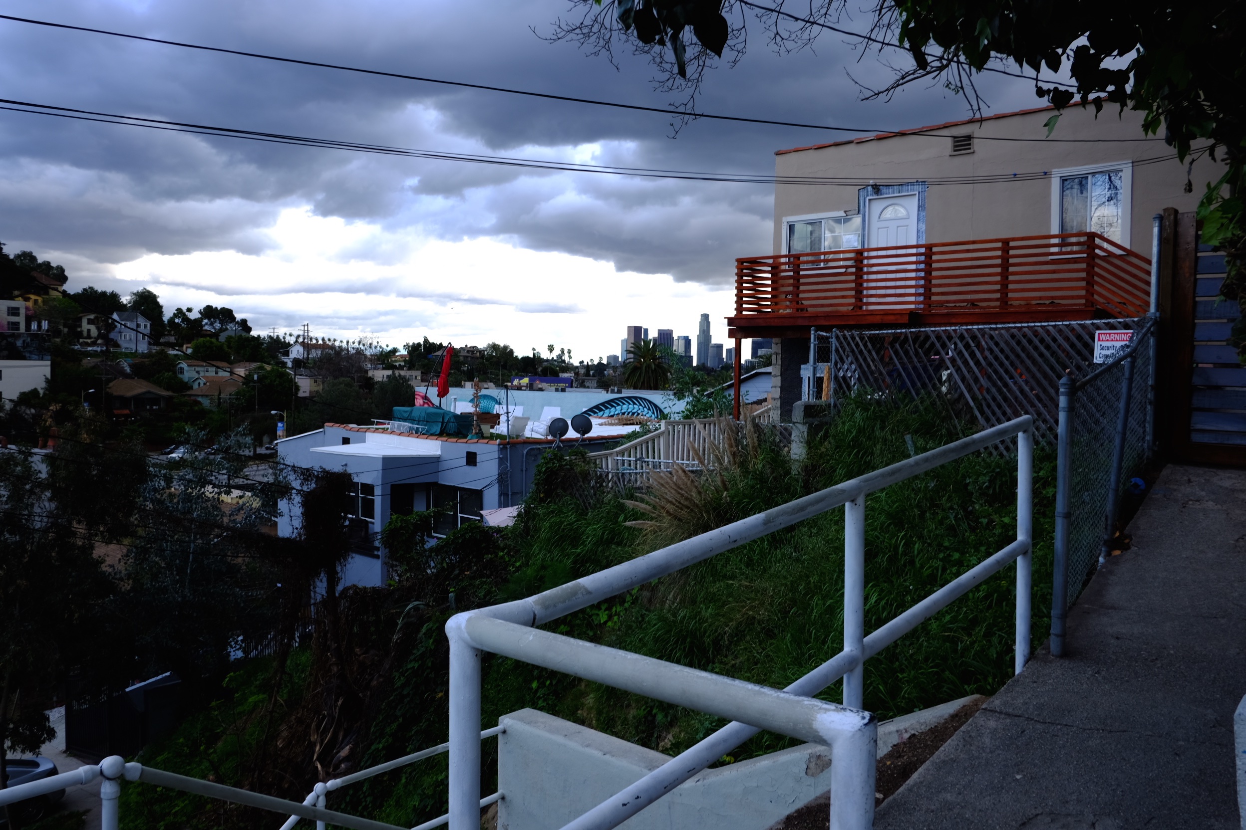And again today I went up into Wilacre Park above Studio City to capture something as brief and beautiful as a child walking for the first time: a sun and smog cursed city magnificently and somberly draped in dark and gray clouds, chilled, sobered and intellectualized by the absence of suffocating heat and blinding light.