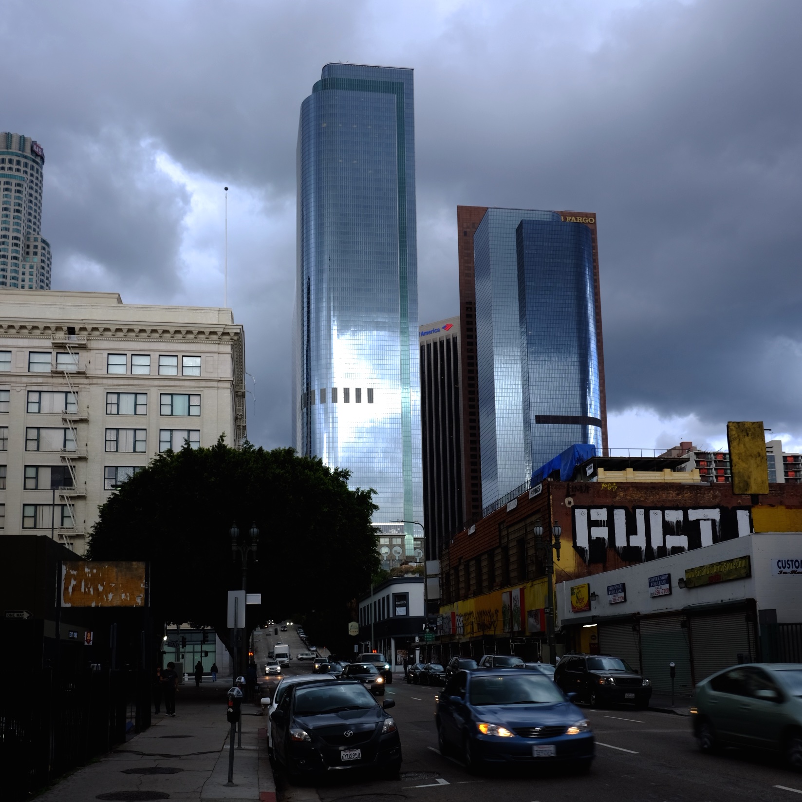 Near Effie Street, I stopped. And I saw dark clouds hover over the silver skyline, glass glistening coldly.