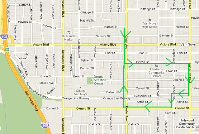 Under the cover of clouds, I walked along Kester, Sylvan, Van Nuys Blvd., Aetna, and Oxnard streets this morning.