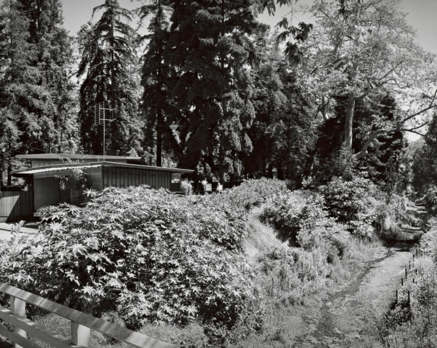 It was a mid 1950s wood house in a redwood grove next to a creek. It was designed by Mario Corbett and photographed by Julius Shulman. (his photo below).
