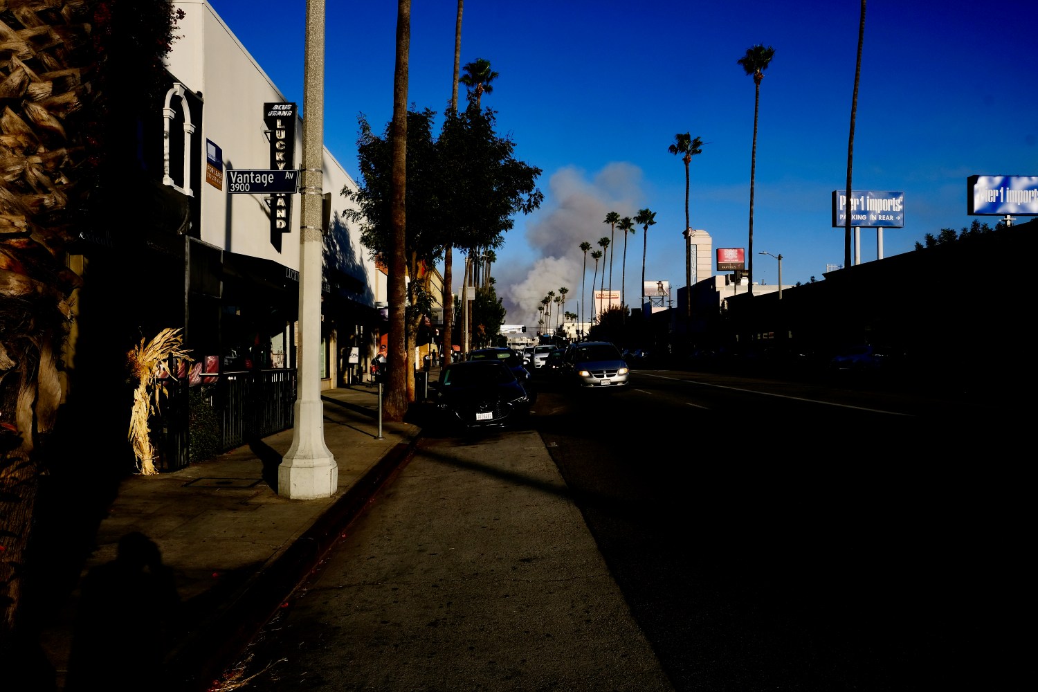 Yesterday, 13.7 years later, there was another fire burning above Warner Brothers Studio near Barham. And the same atomic plume of smoke went up in the sky and theatrically filled up the space between the rows of palm trees along Ventura Boulevard.