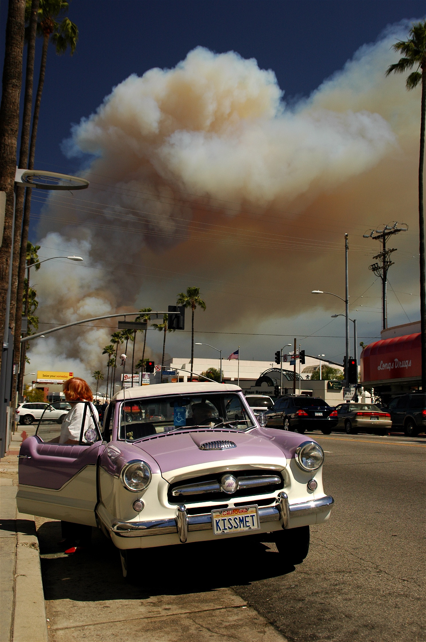 Today, around 12:30 PM, a car caught fire while parked in the Salvation Army lot at 6300 Sepulveda Blvd. in Van Nuys. I was driving past it on my way to Costco. I stopped, parked and recorded these photos and video of the event which was quickly extinguished by the LAFD.