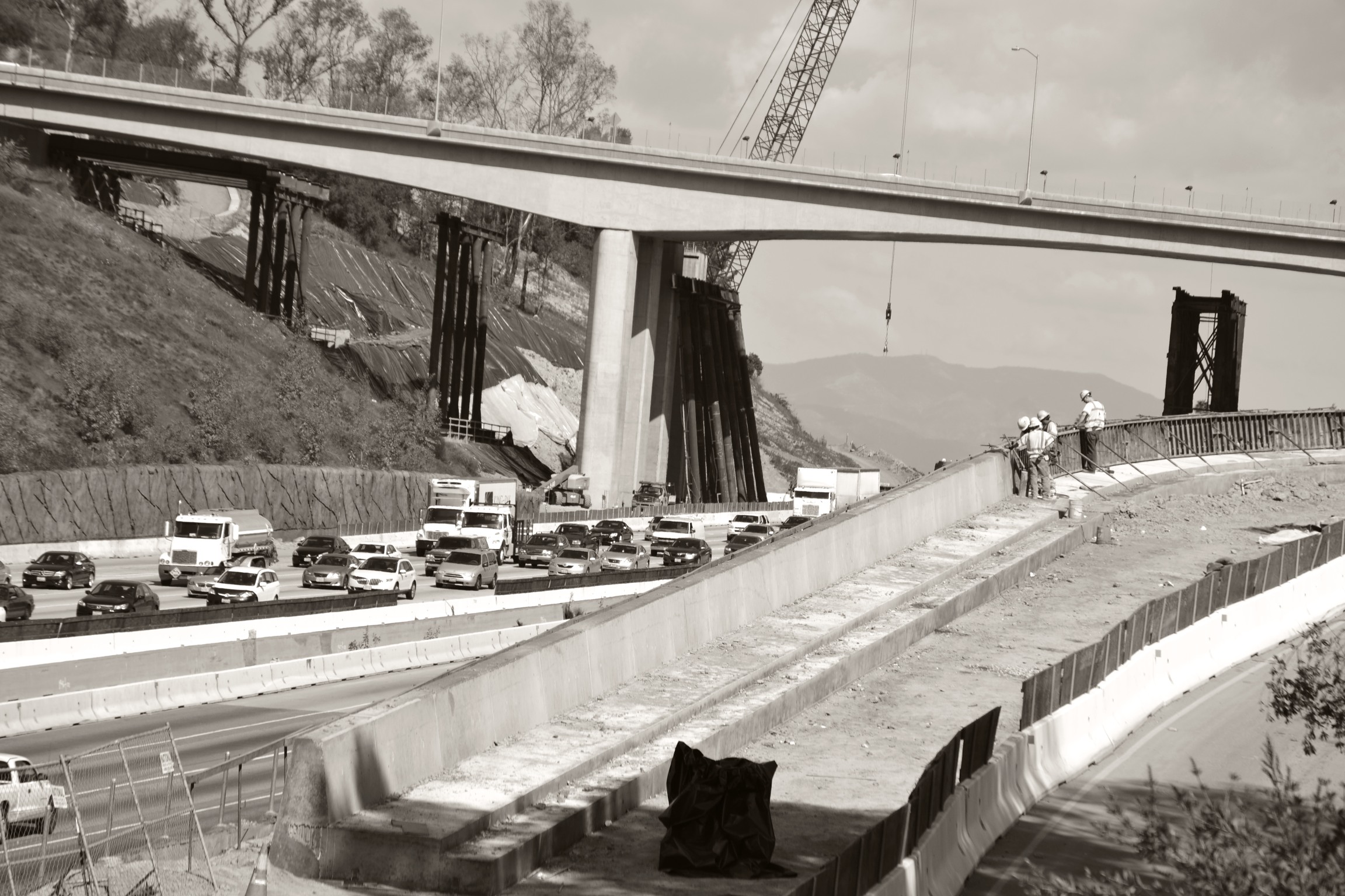 The 10-mile long, $1 billion dollar widening of the San Diego Freeway is a monumental feat of engineering: demolition and reconstruction of bridges and roads, 27 on/off ramps, 13 underpasses and 18 miles of retaining and sound walls.