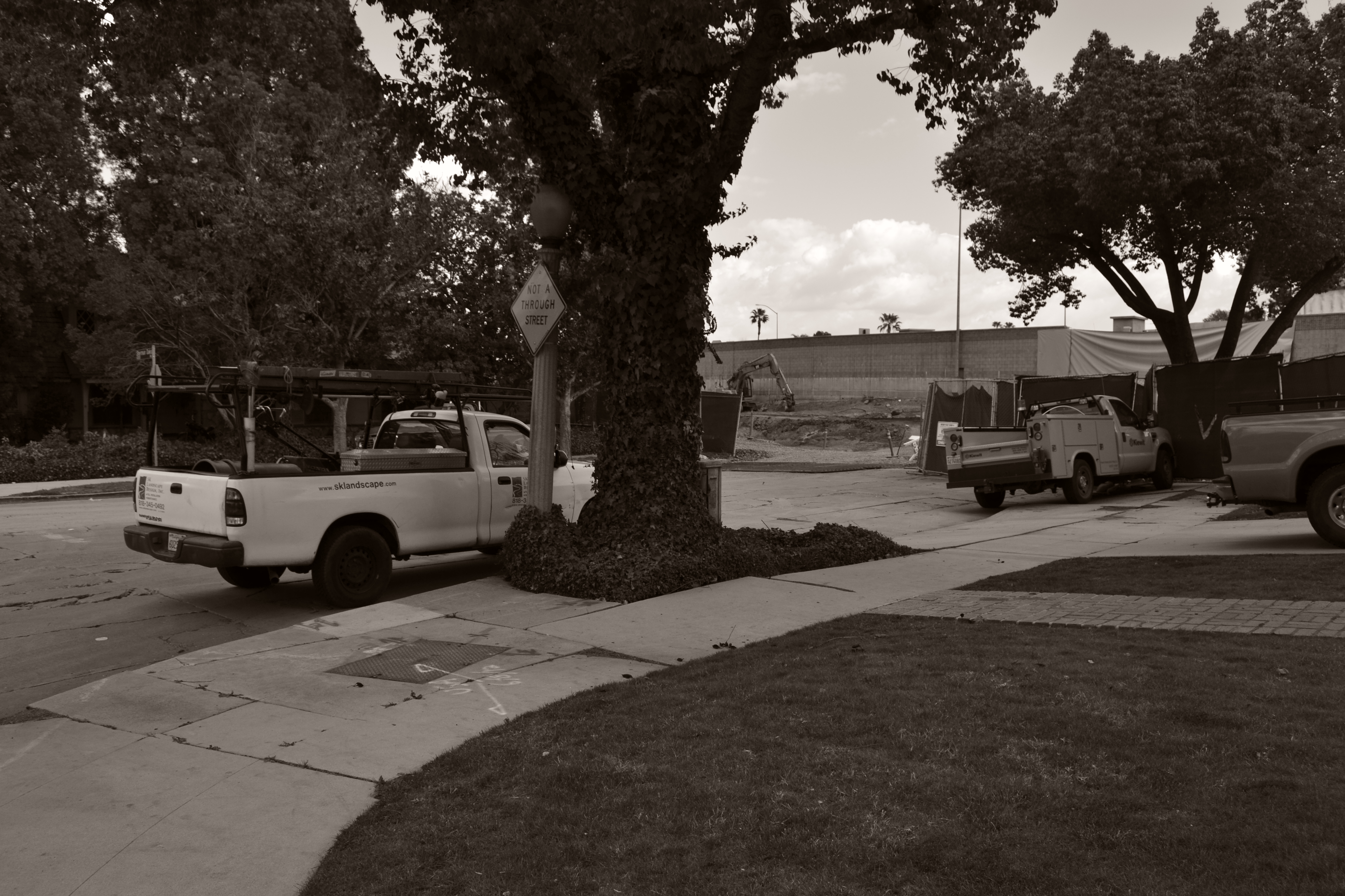 The skies and sounds reminded me of the days after September 11, 2001. I had been working on Radford Street in Studio City, and came out of an office on Valleyheart Drive, and looked up into the sky and saw or heard not a single jet plane flying above. The serenity of Los Angeles, without aerial assault by plane, was mesmerizing ten years ago. And absent automobiles it mesmerized me yesterday.