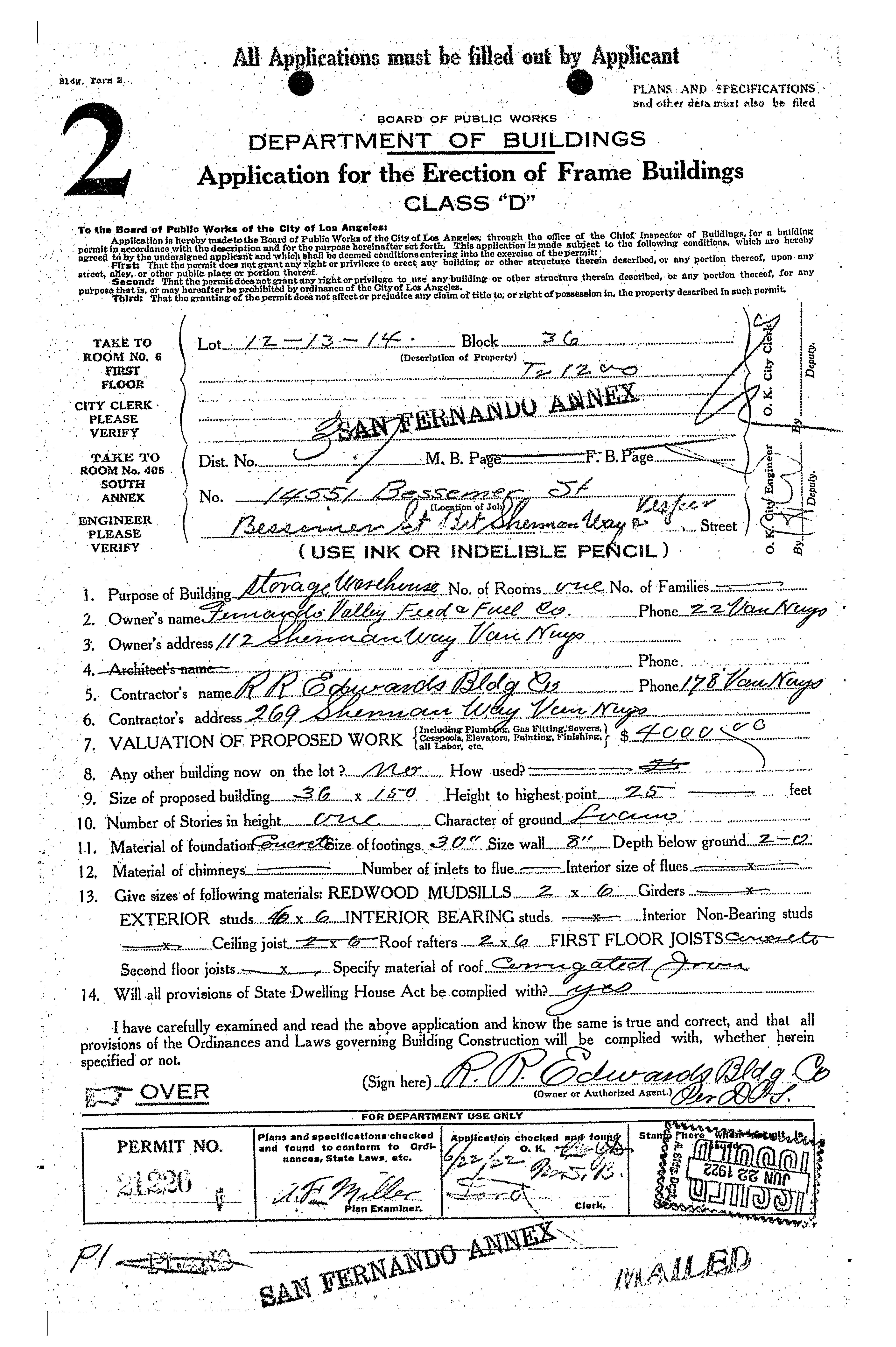 He seems to have done fine with his new house, and in 1957, 55-year-old Leroy built a $4,200 addition to 14914 Sylvan which included a back lot kitchen, living room and bedroom.