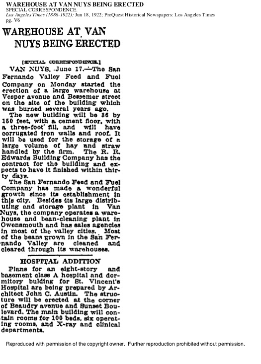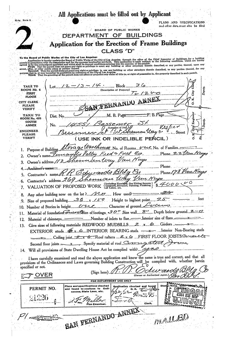 The 1937 San Fernando Valley Directory listed DWP lineman Leroy Dondelinger (b.4/15/1902, Colfax, NE/d.10/27/85 Santa Barbara, CA) and his wife of 12 years, Mary Ellen (nee Fridell; 1902-1980) living at 14545 Vanowen St.
