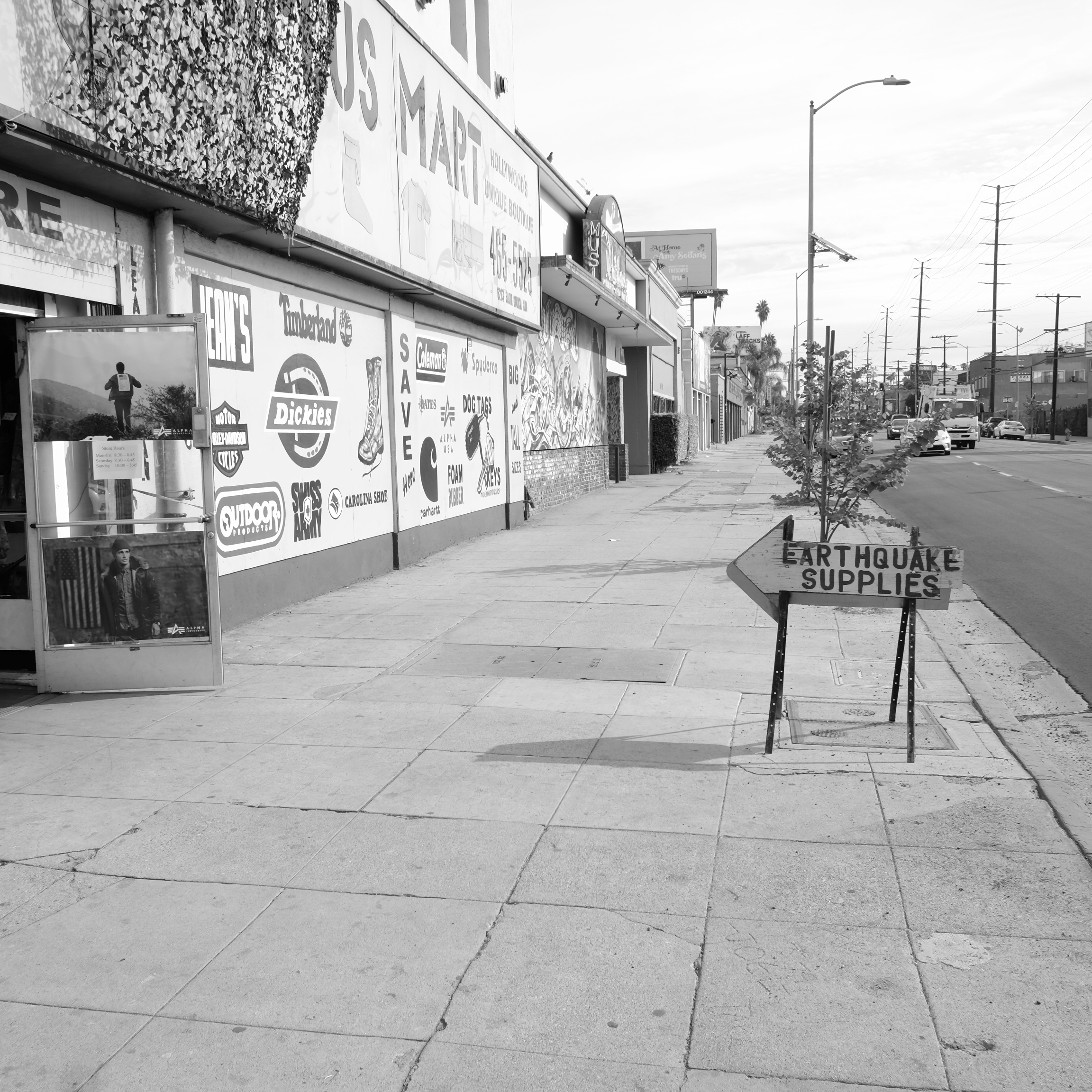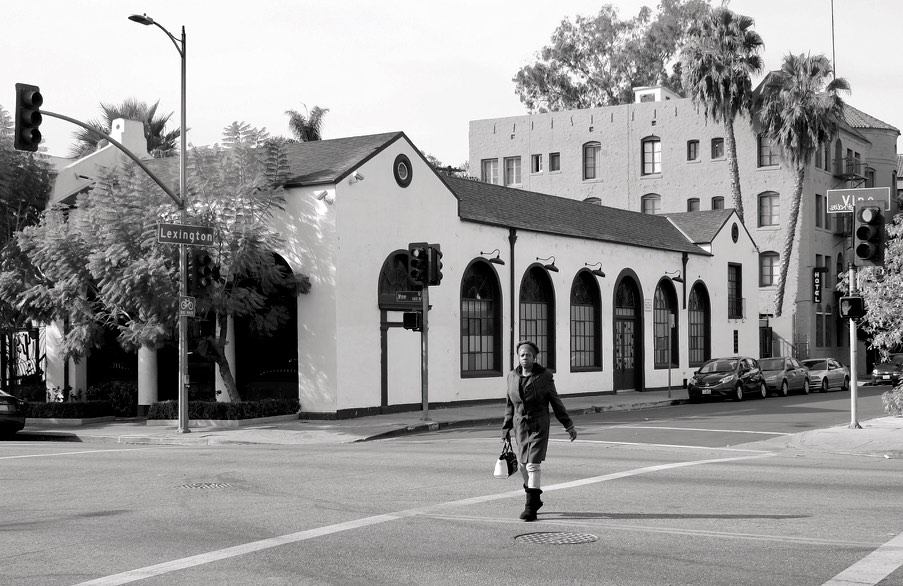 In black and white, editing out the poverty, Vine Street presents itself as a neat and tidy noir place. There is Stein and Vine Drums, the DWP Service Building, erected 1924; Bogie’s Liquors, the Army/Navy & Earthquake Supplies, and Camerford Avenue, a street I never heard of until today.