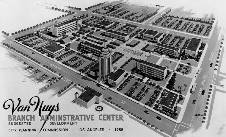 Building the LAPD Van Nuys 1962.LAPL: 1958 plans for Valley Administrative Center in Van Nuys