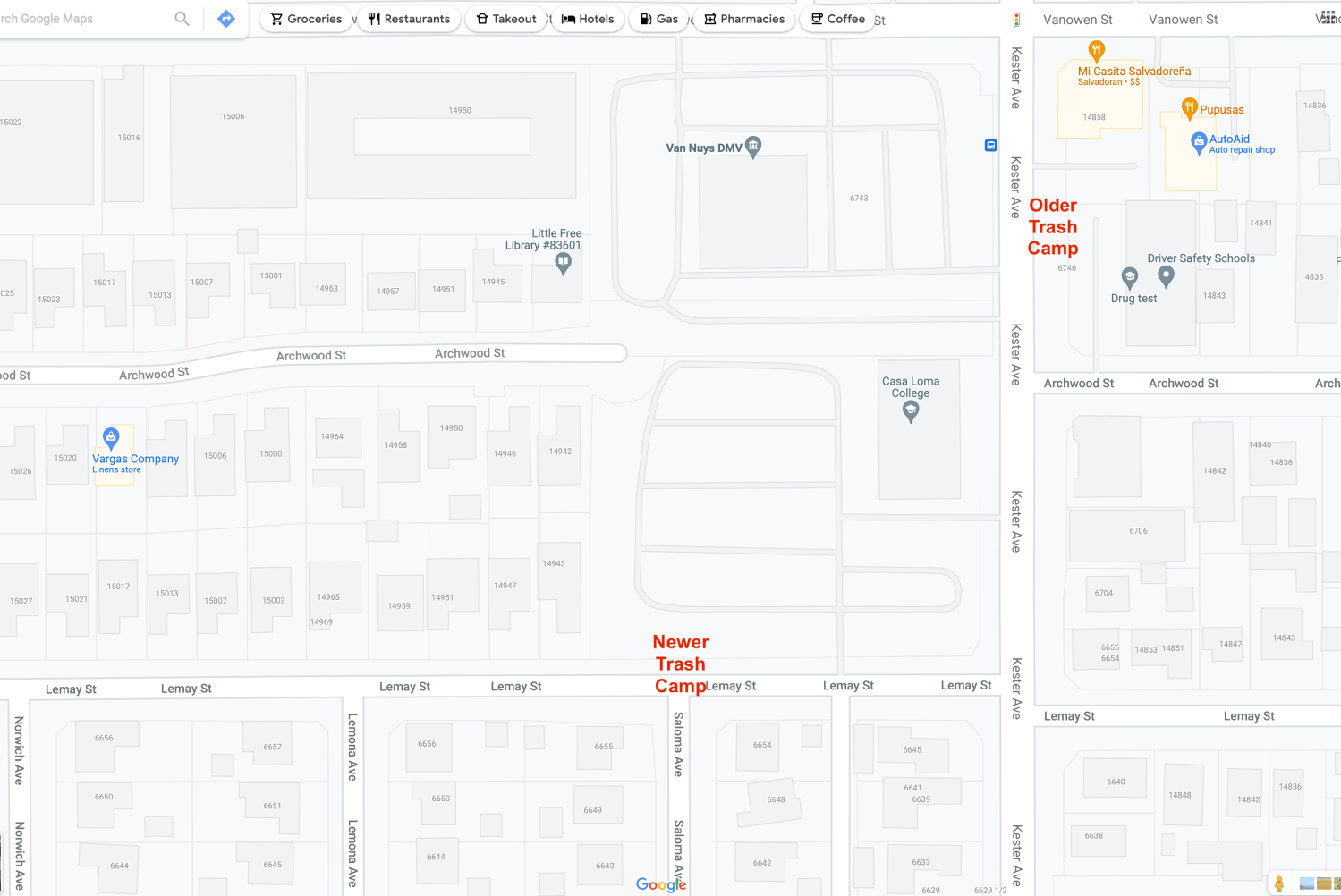 Three months ago, the LAPD Van Nuys division held their monthly talk and all the Senior Lead Officers spoke. Our man proudly stated he had removed this trash camp, which previously was unhoused on the SE corner of Vanowen and Kester. The camp then moved itself, shopping baskets and cars, to Lemay.