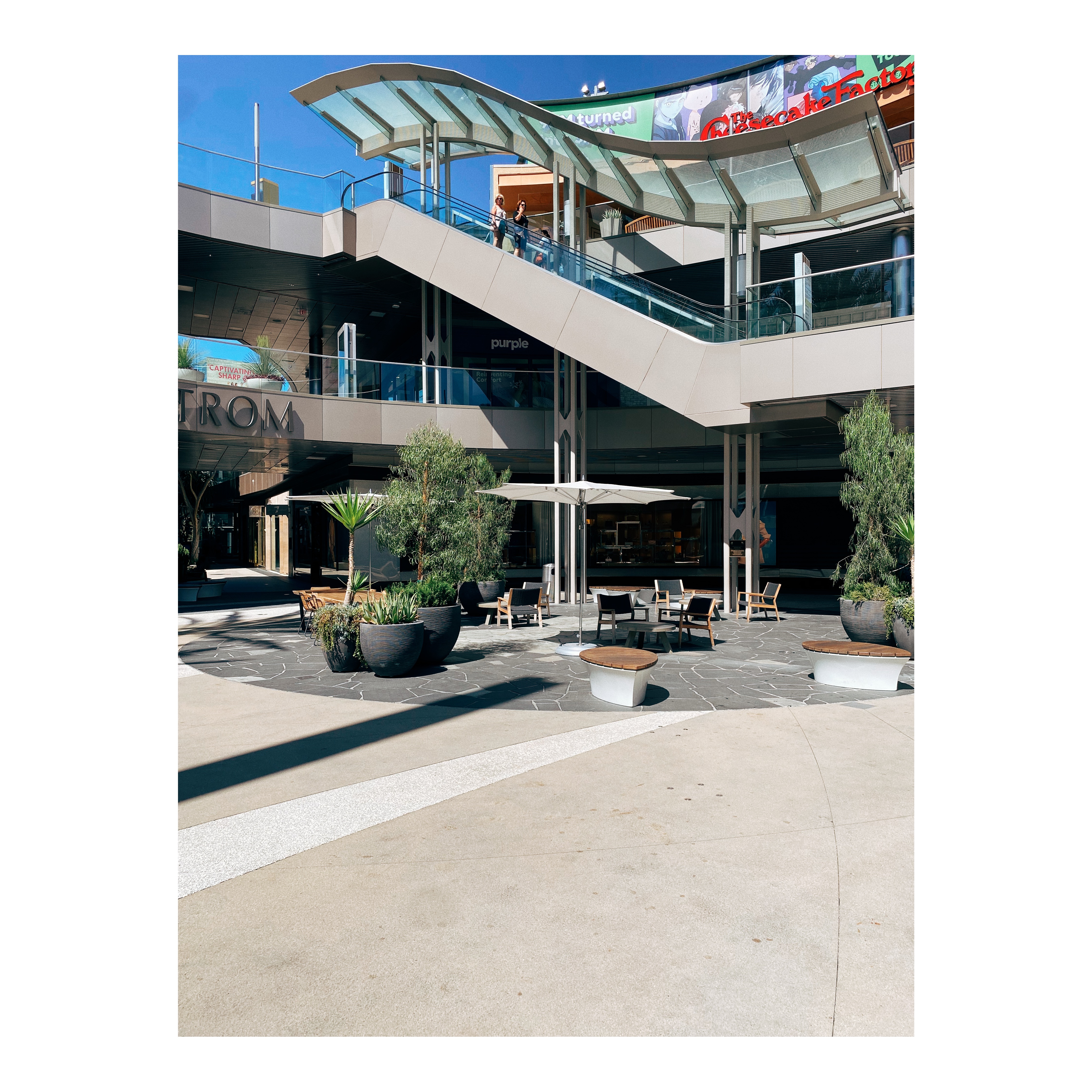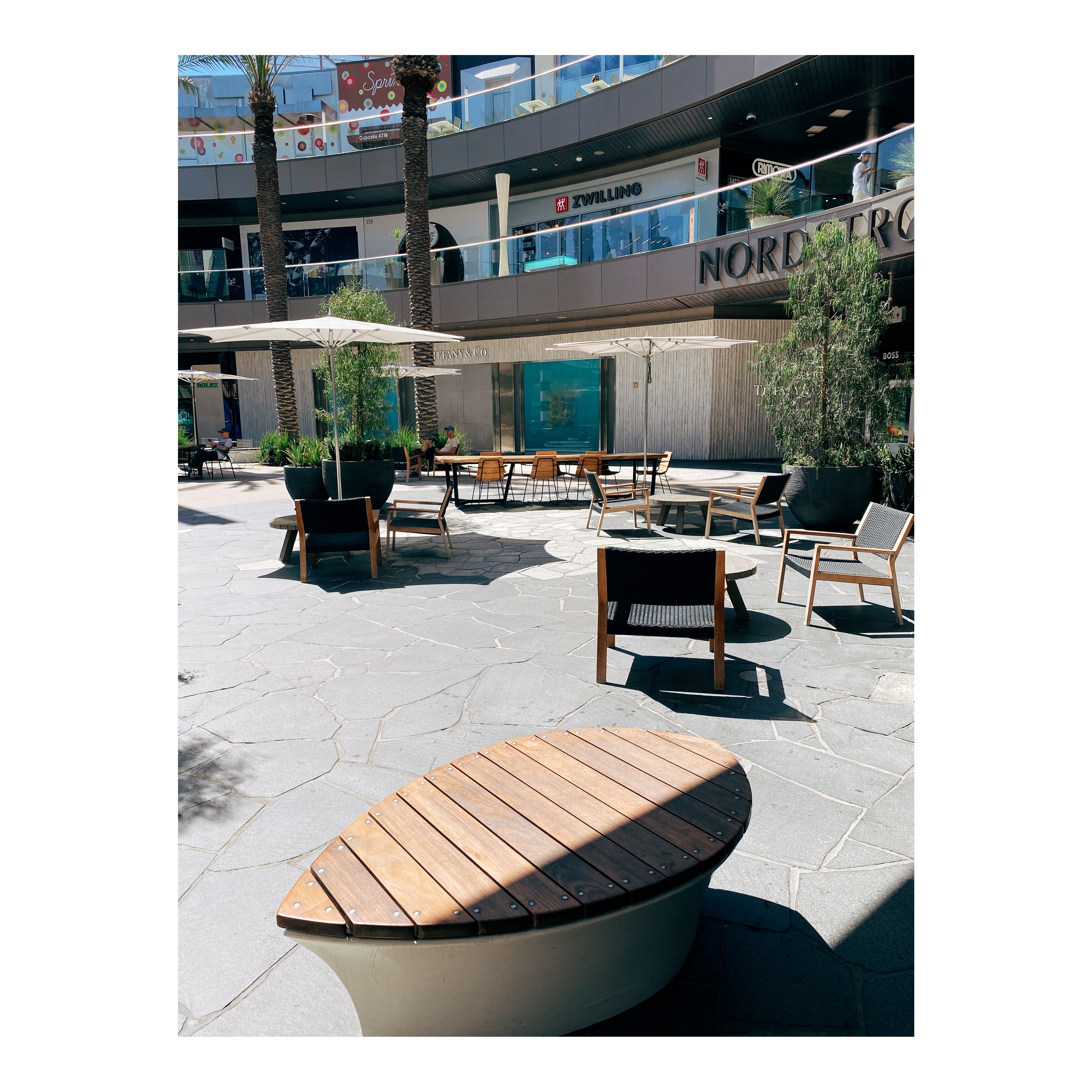 The sun still shines brilliantly. The buildings, for the most part, are well-kept. But the life and the crowds are absent. Benches, outdoor dining, storefronts, are lifeless. There are “for lease” signs everywhere.