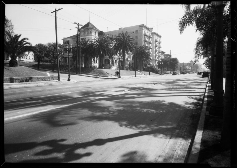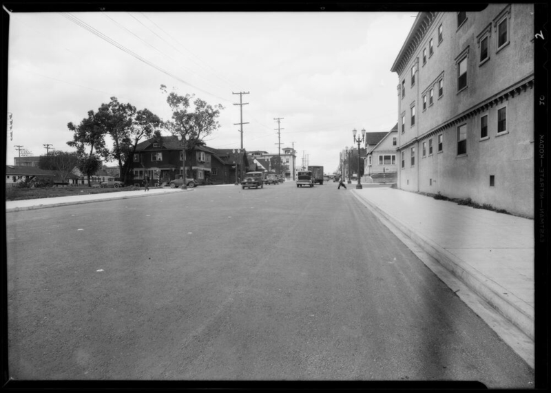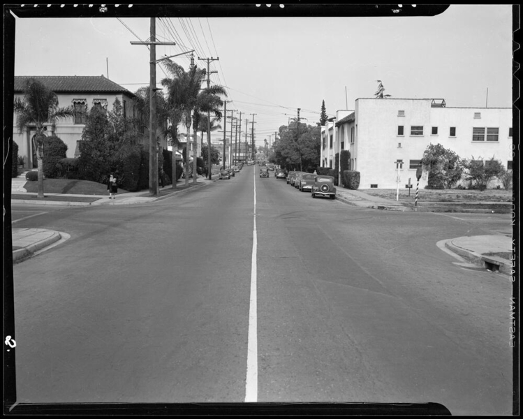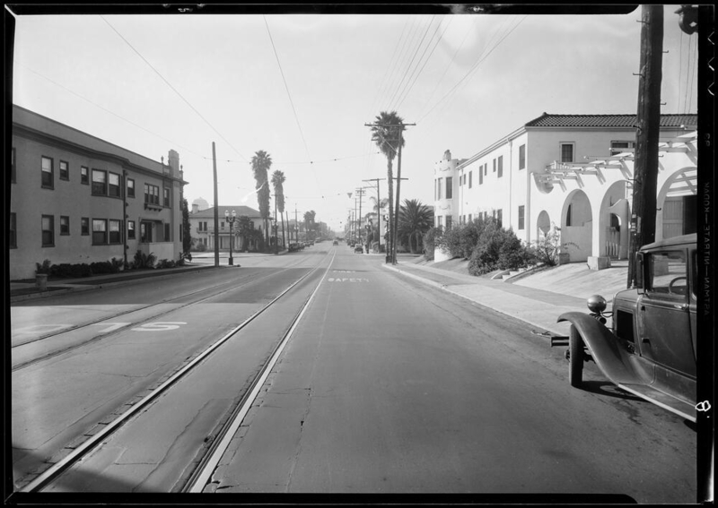 Photograph of intersection, West 6th Street & South Grand View Street, Los Angeles, CA, 1933.