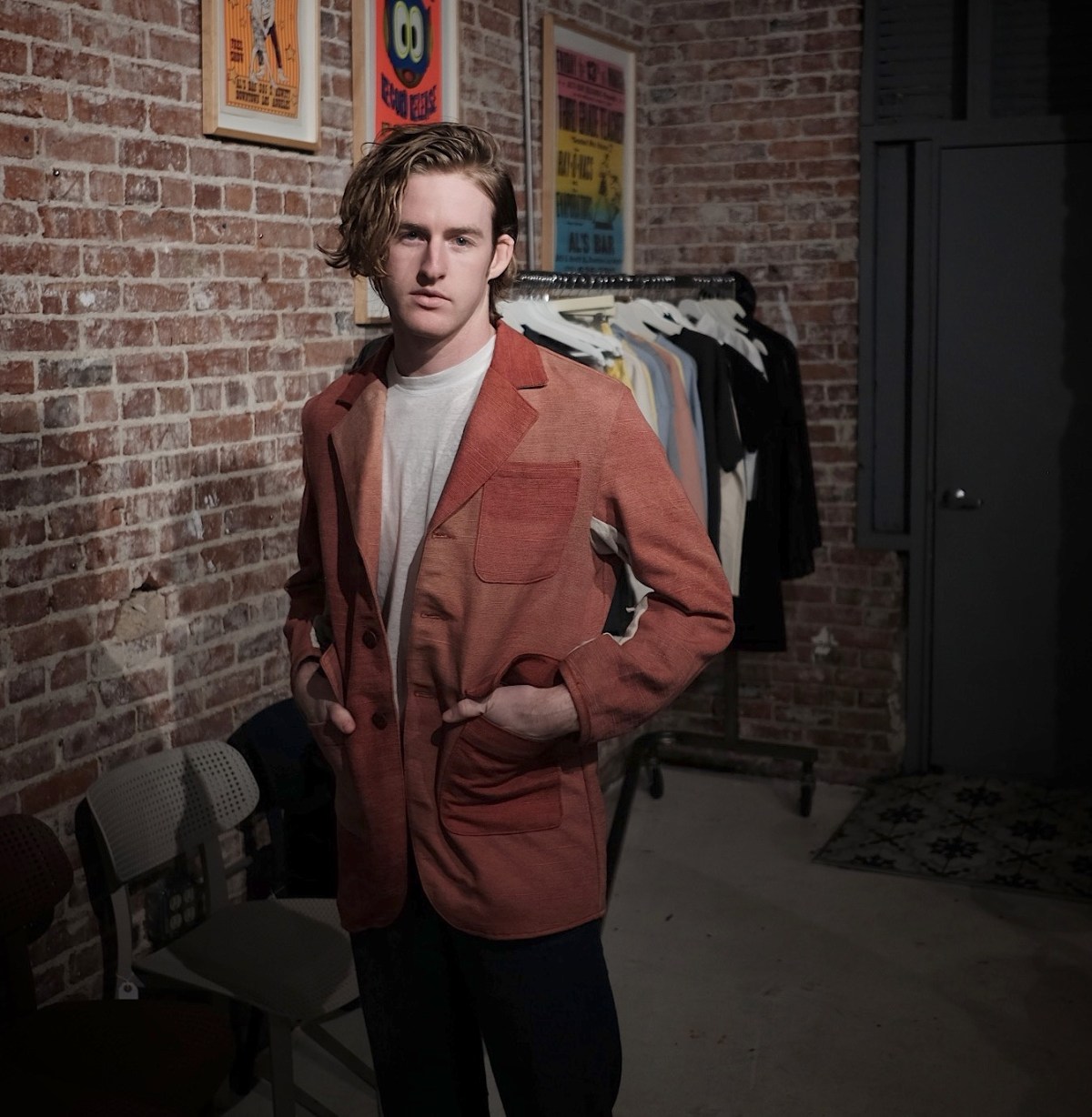 Tall, blond, long-haired photographer @bradleyjcalder was there in bell-bottoms and I asked him to try on a strangely gorgeous salmon colored jacket from @clutchgolf. I wondered if he was related to artist Alexander Calder.