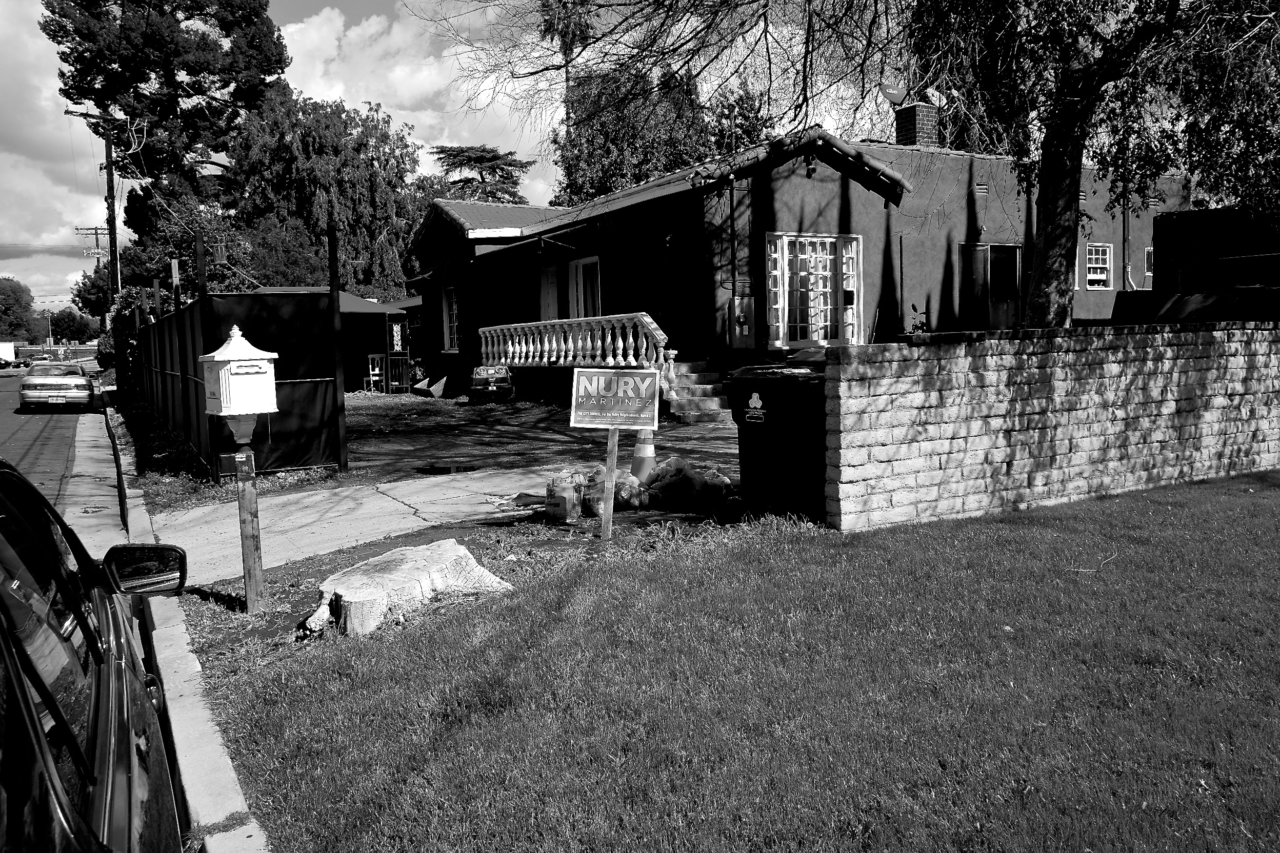 The sunny aura along these streets, a dependable and somnolent monotony of the middle 1950s, is of people working and keeping up their homes, raising their kids and taking pride in their community. This could be Culver City or Burbank, so absent are those markers of decay that afflict Van Nuys only two blocks north of here.