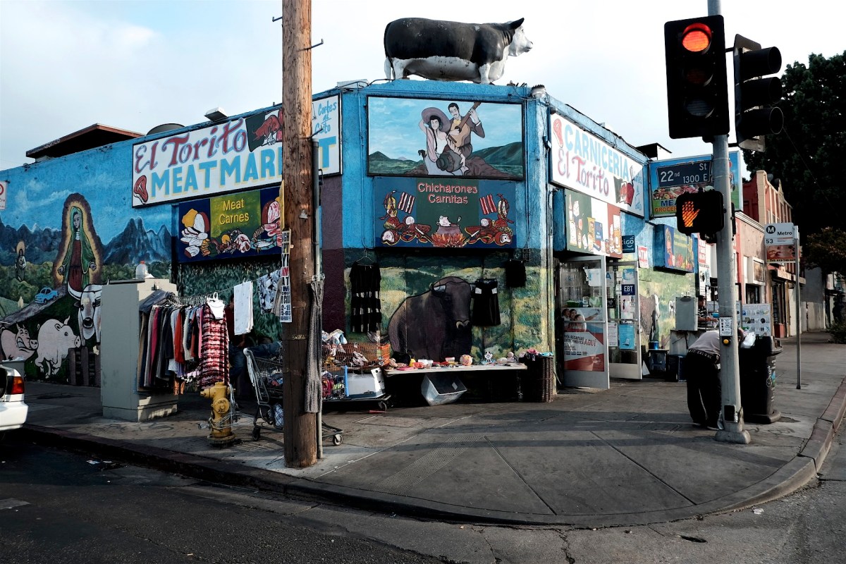 These are the kind of typically Californian streets that make people from other states uneasy. They mix danger with intoxicating beauty, ruin next to richness. Is this a good or a bad place? In this area an old lady might come outside and offer you apple pie… or aim a gun at your head.