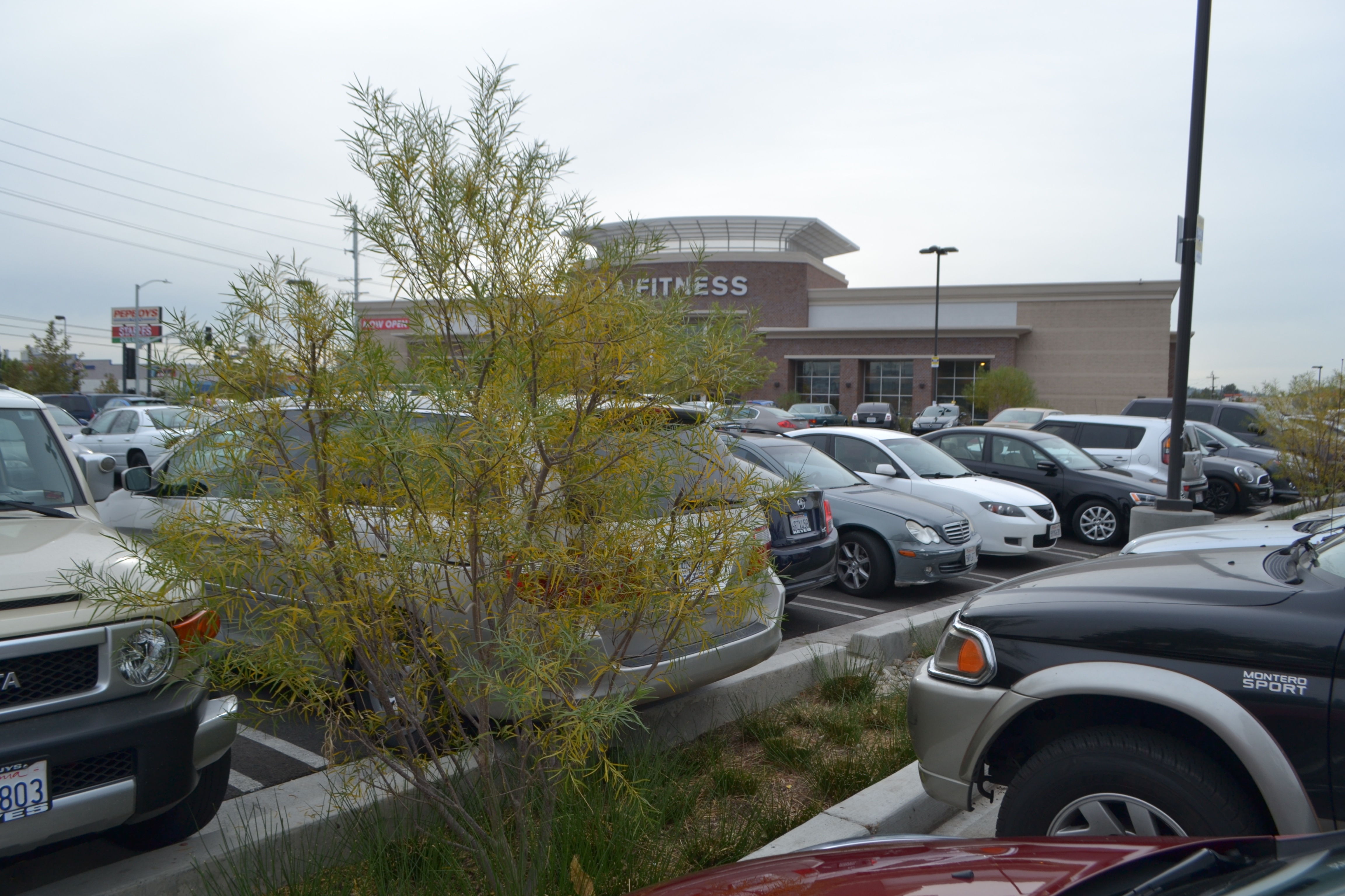 Zoned commercial, this is also next door to a Wendy’s, also recently naturalized, with new water saving plants and a modernistic, horizontally striped renovation. Customers who feast on industrial meat, sugary soda, and frozen French Fries, all trucked in from Iowa, will do so surrounded by native California succulents.