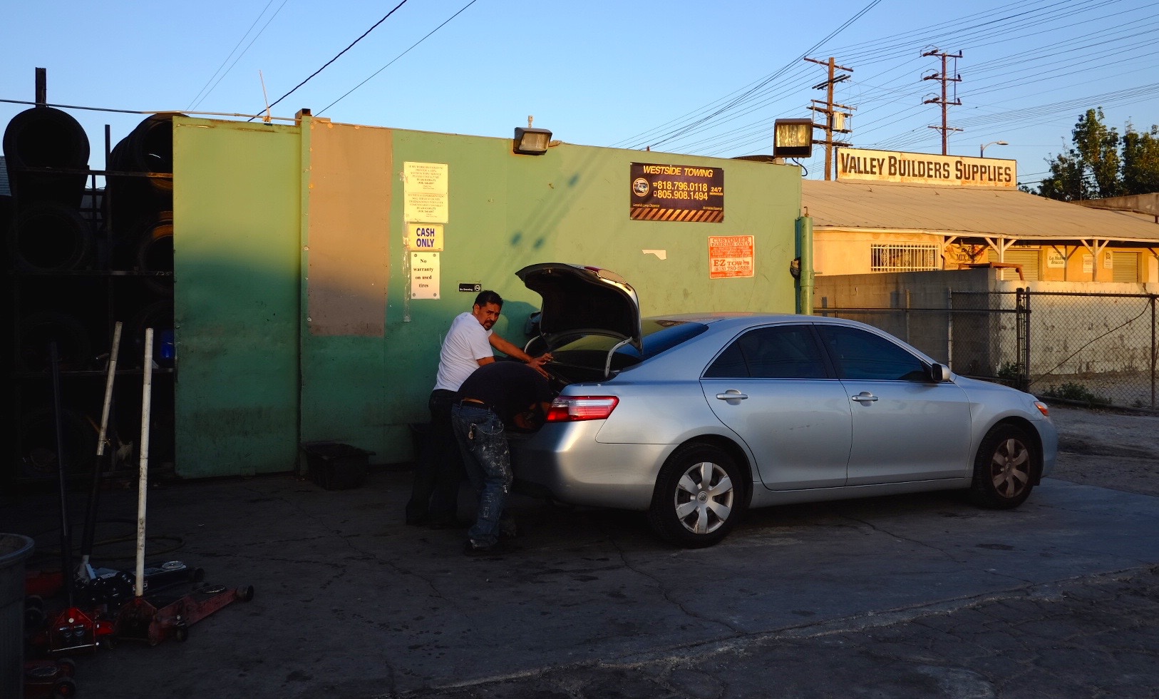 Walk on Kester north of Oxnard and you are in a man’s world of marijuana, liquor, used tires, transmissions, clutches, sand, gravel, cement, cheap beer, lottery tickets, tow trucks and dogs on chains. This is un-distilled and un-filtered Van Nuys, where hard-working immigrants take flat tires off cars and put bald ones back on.