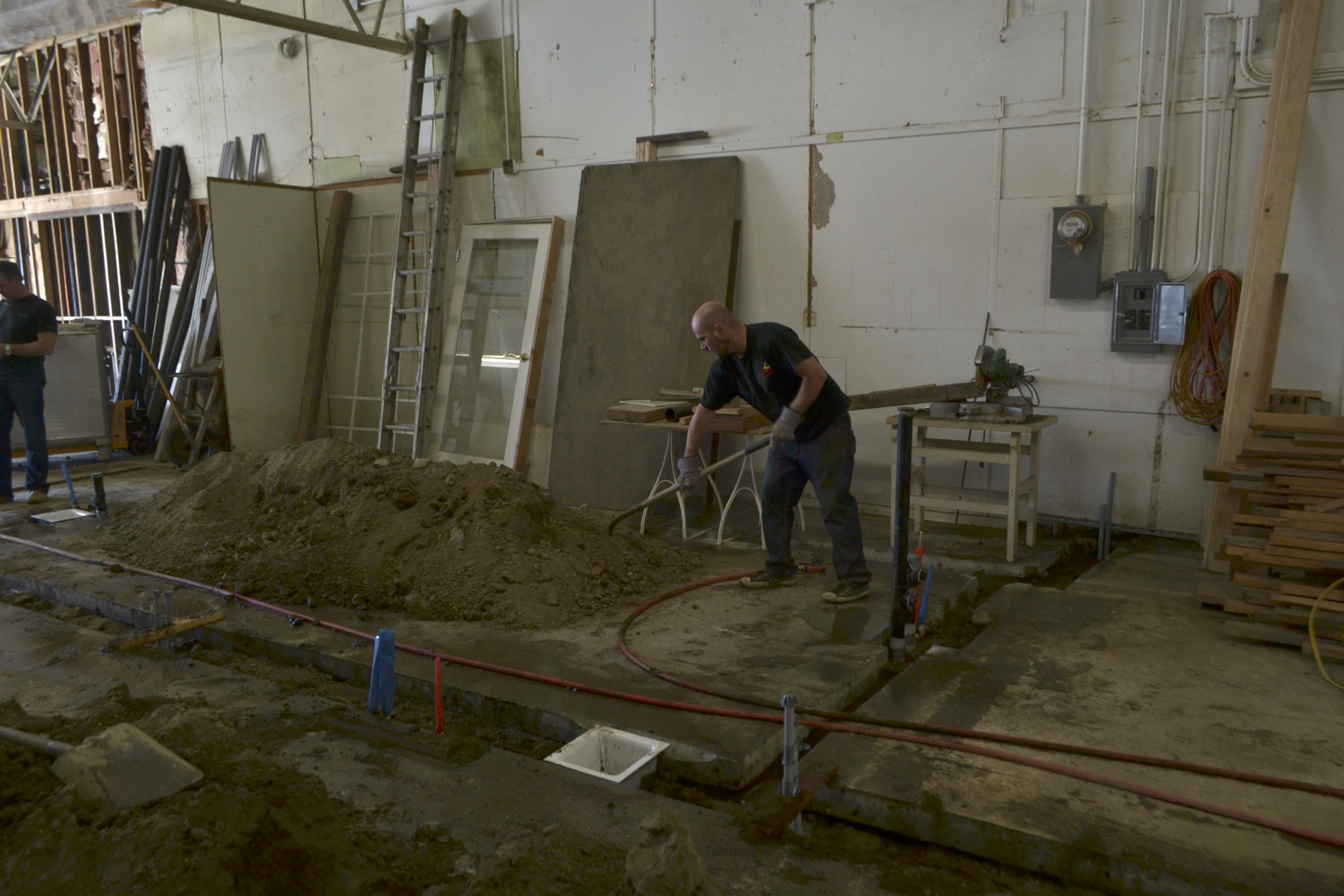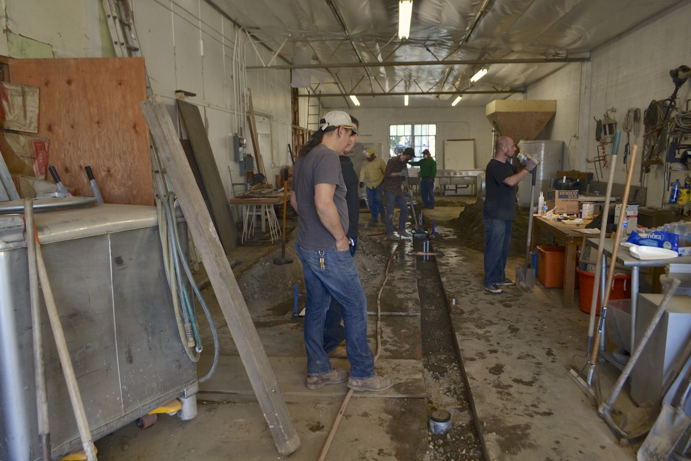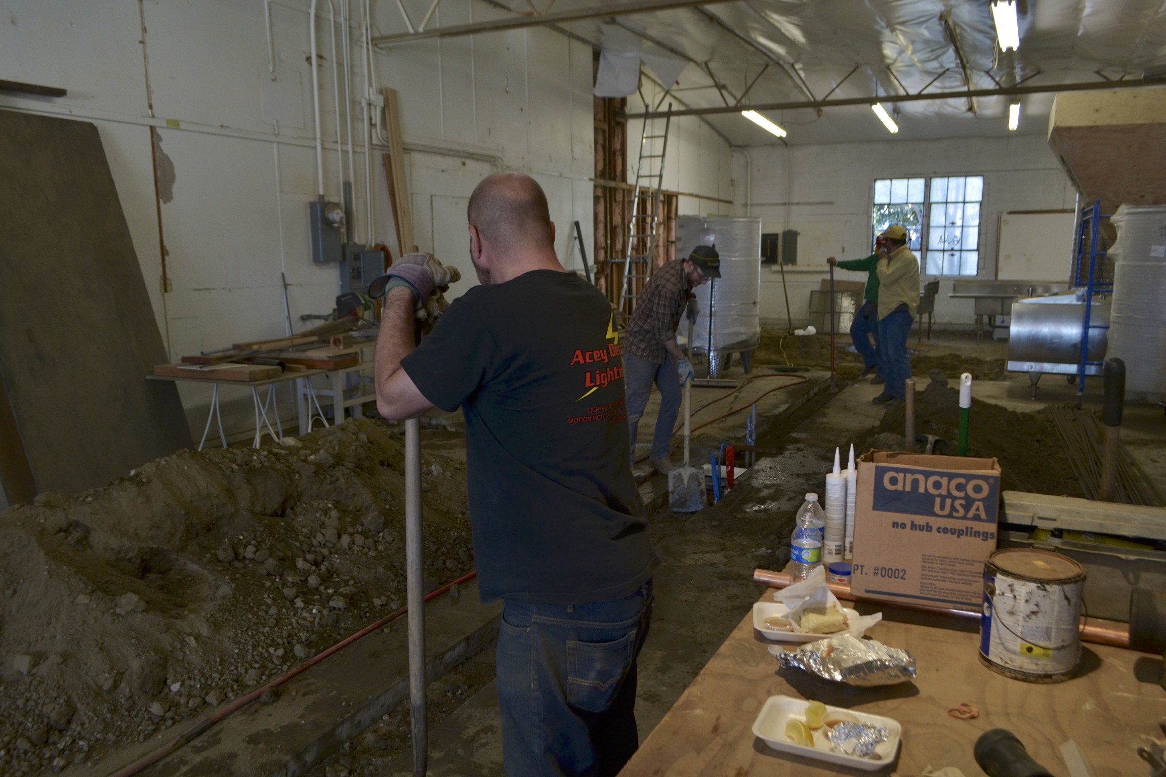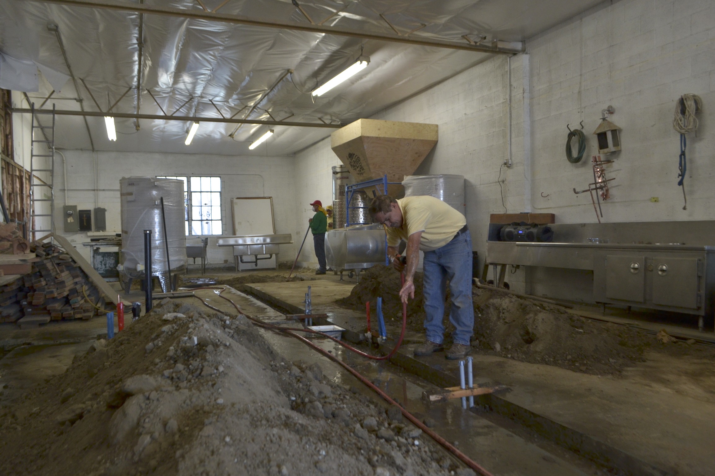 MacLeod (pronounced “mac-cloud”) Ale Brewing Company “a seven barrel production brewery with a tasting room” is in the midst of construction, with floors ripped open for pipes; and dirt, lumber, shovels and a lot of labor working hard to get this industrial space transformed into a functional operation by April.