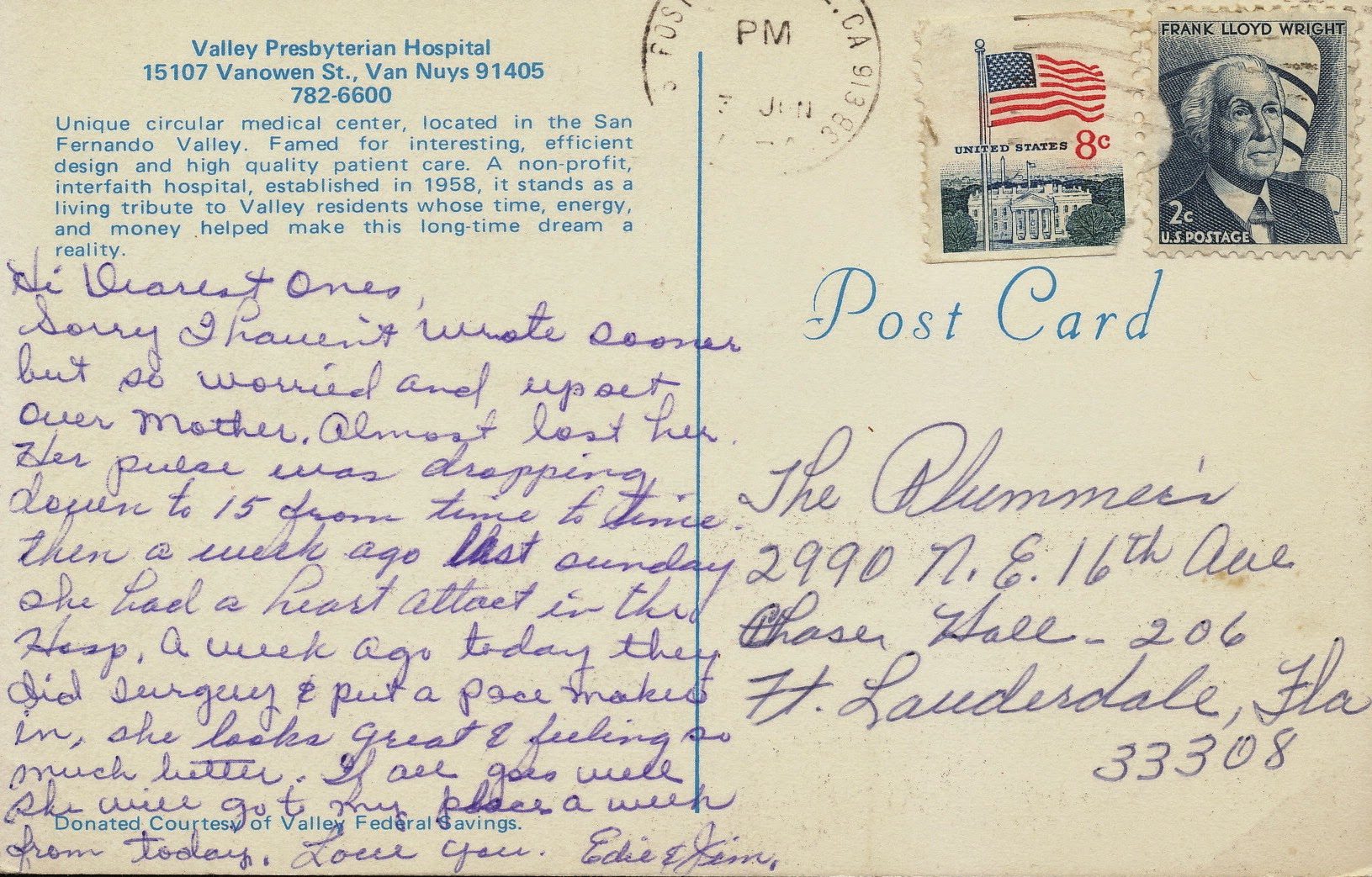 Scanning through some of the postcards loaned to me by Tommy Gelinas at Valley Relics, I came across this 1963 postcard of a new building at the corner of Chandler and Laurel Canyon in North Hollywood.