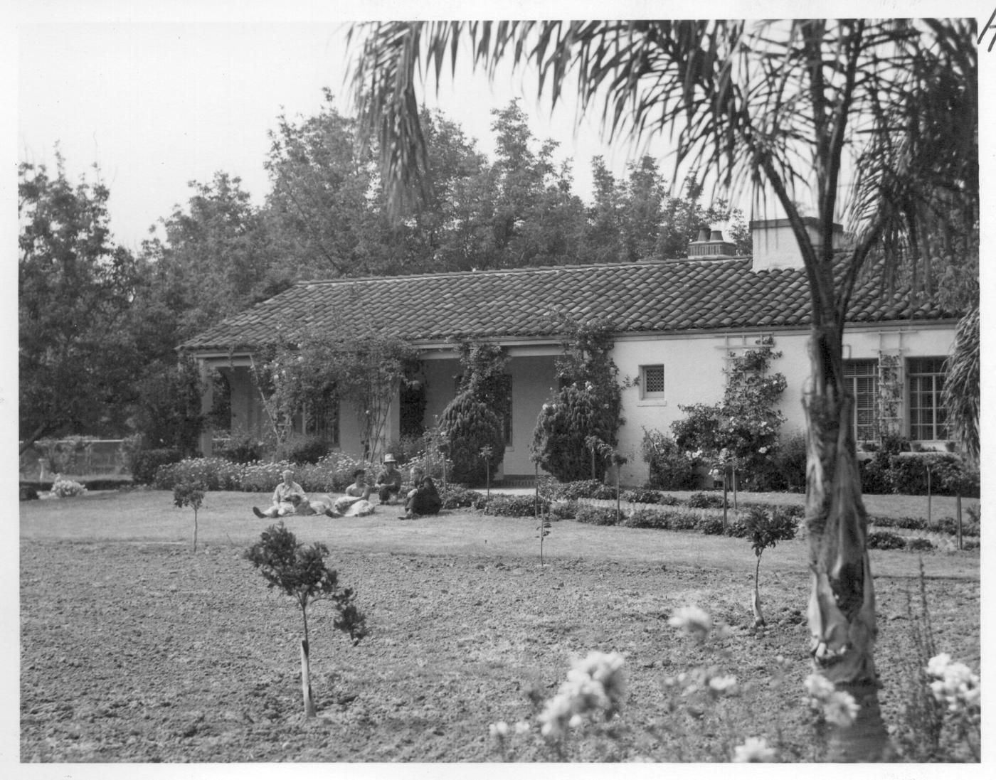 “This is the main dwelling on the beautiful walnut grove estate of Dr. Sidney Walker, 17367 Parthenia Street, Northridge, in the San Fernando Valley.