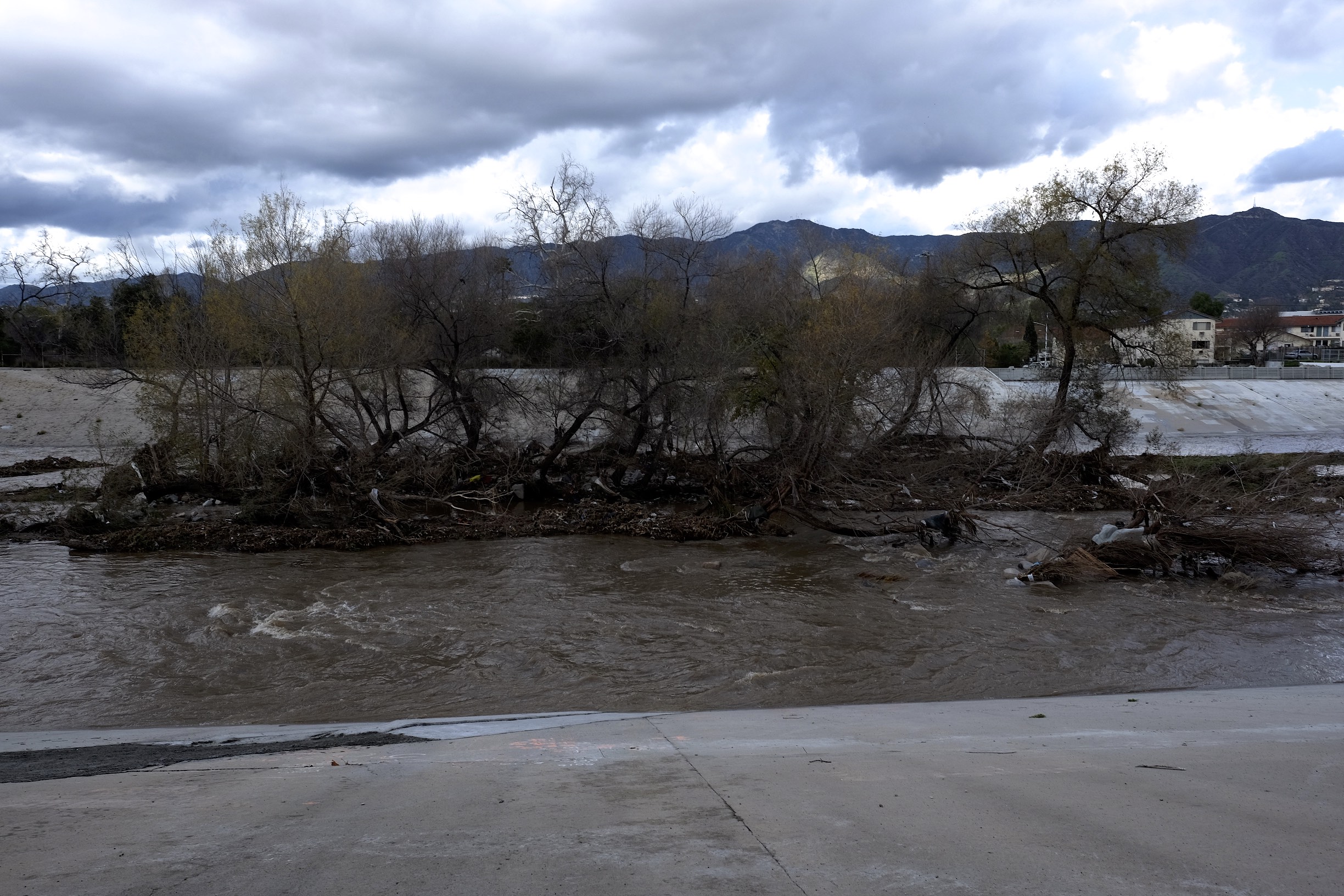 There were many dramatic scenes from the “record breaking” winter storm which slammed into Southern California over the weekend: downed trees, car crashes, torrential rains, rapid water speeding down concrete channels, trees bent over in the winds, dark clouds and intermittent sunshine.