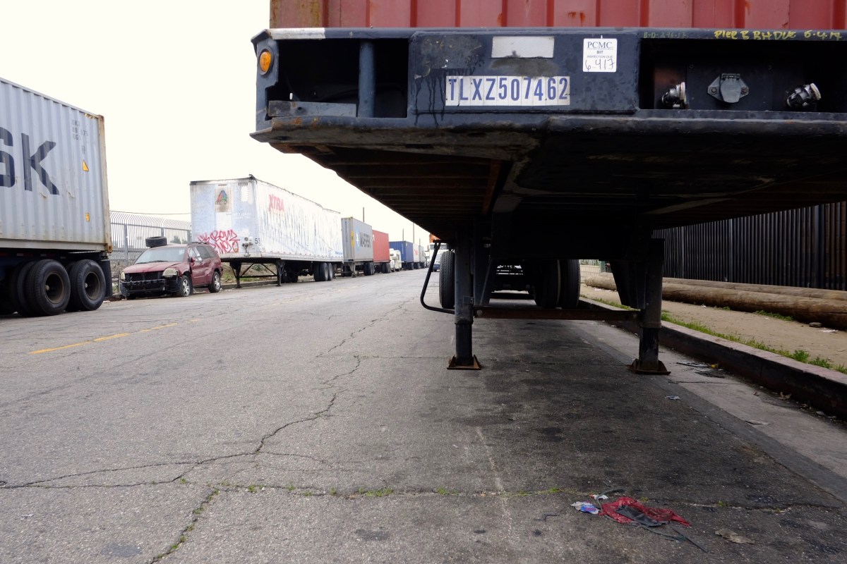 Adding to the criminality of the area, dozens of unhitched trucking trailers are parked along the road, taking up space, and attached to no moving vehicles.